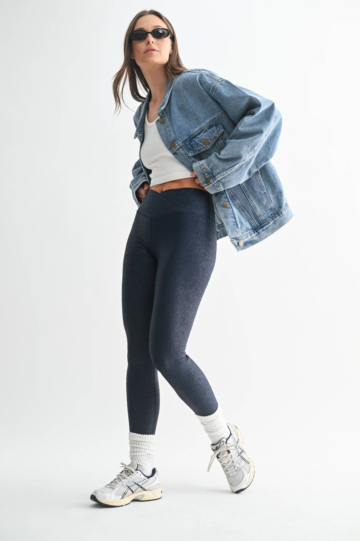 The boxy silhouette of this denim jacket gives off relaxed vibes - perfect to layer over your Mono B activewear for a casual outing. It features two breast pockets, two side pockets, and metal buttons. 100% cotton. Made in China.