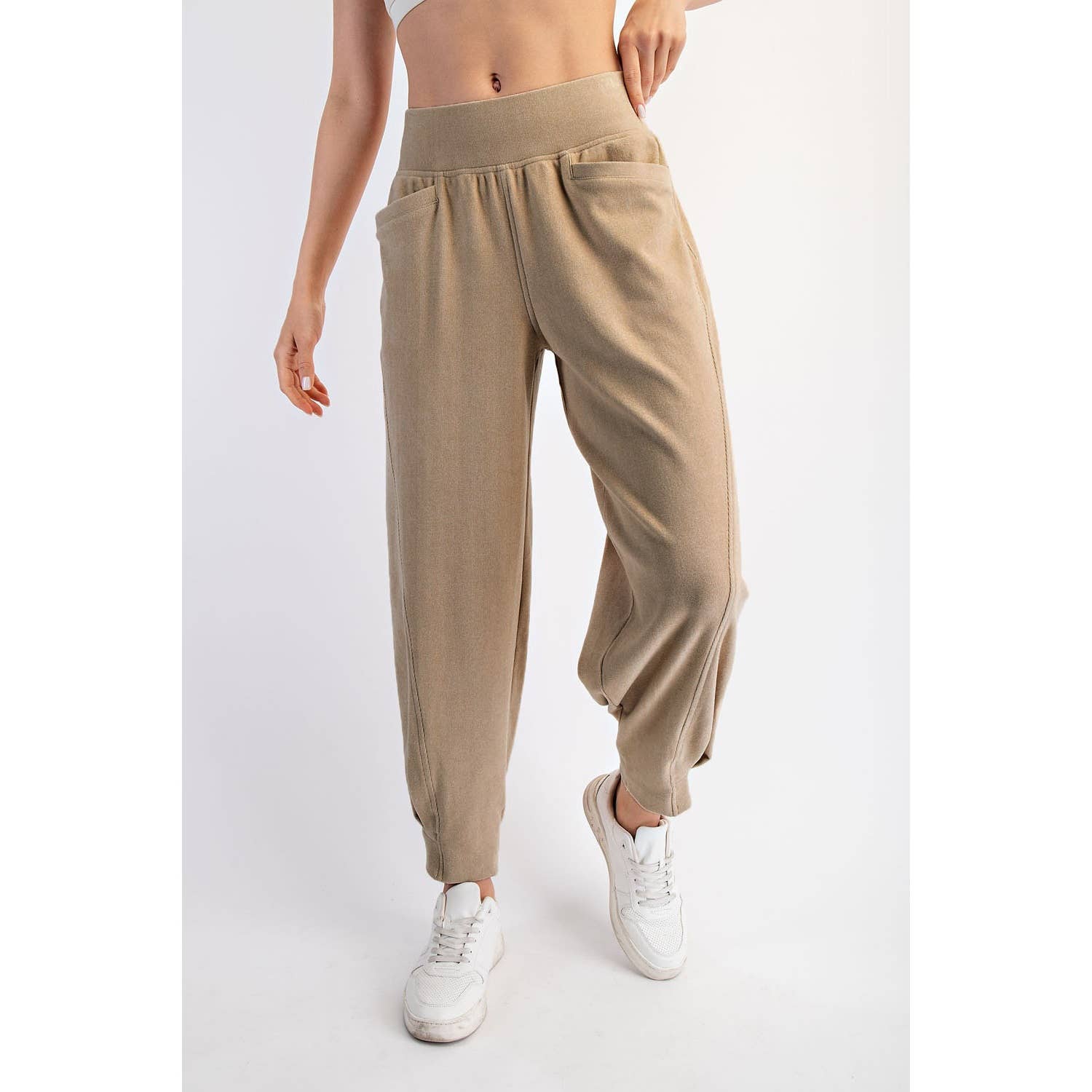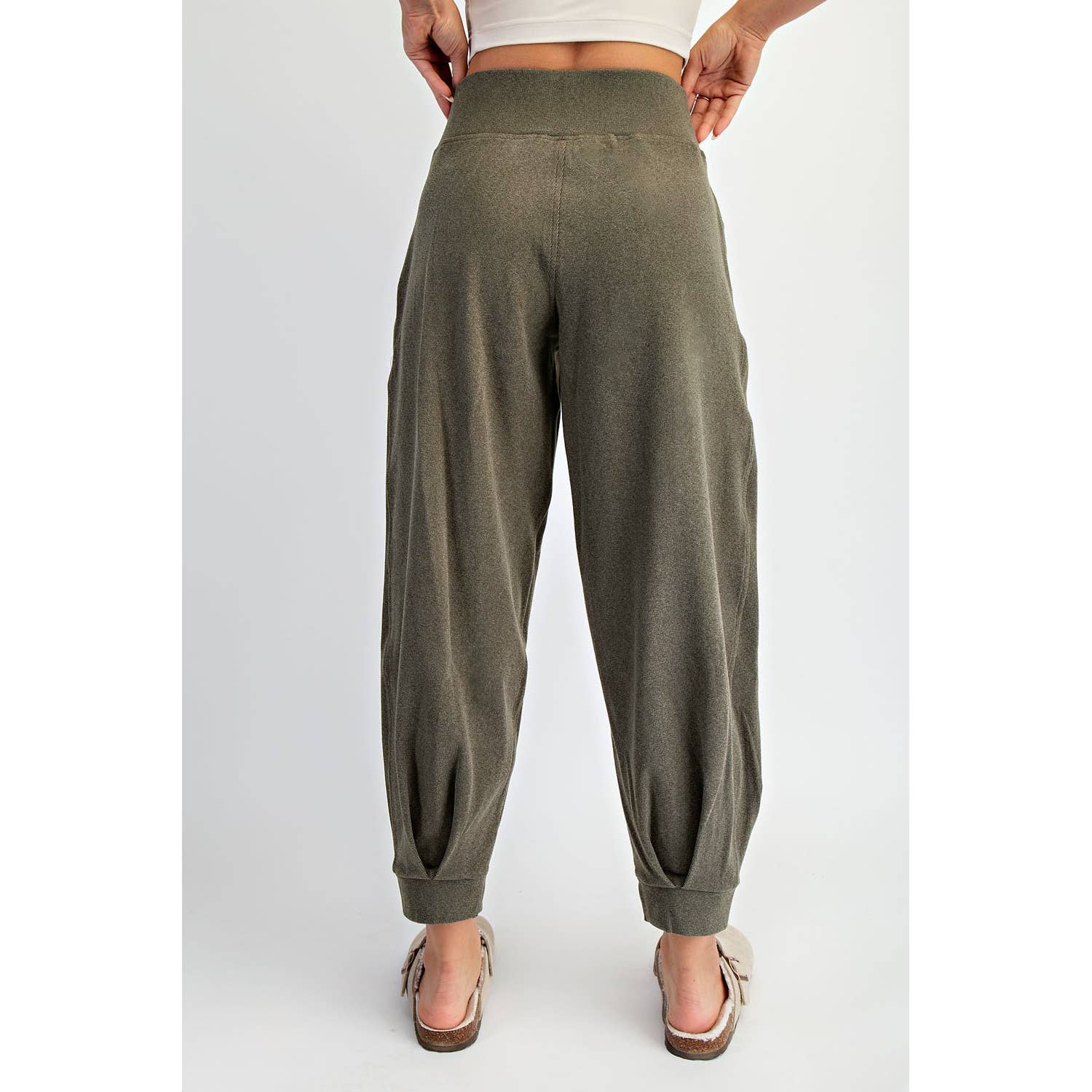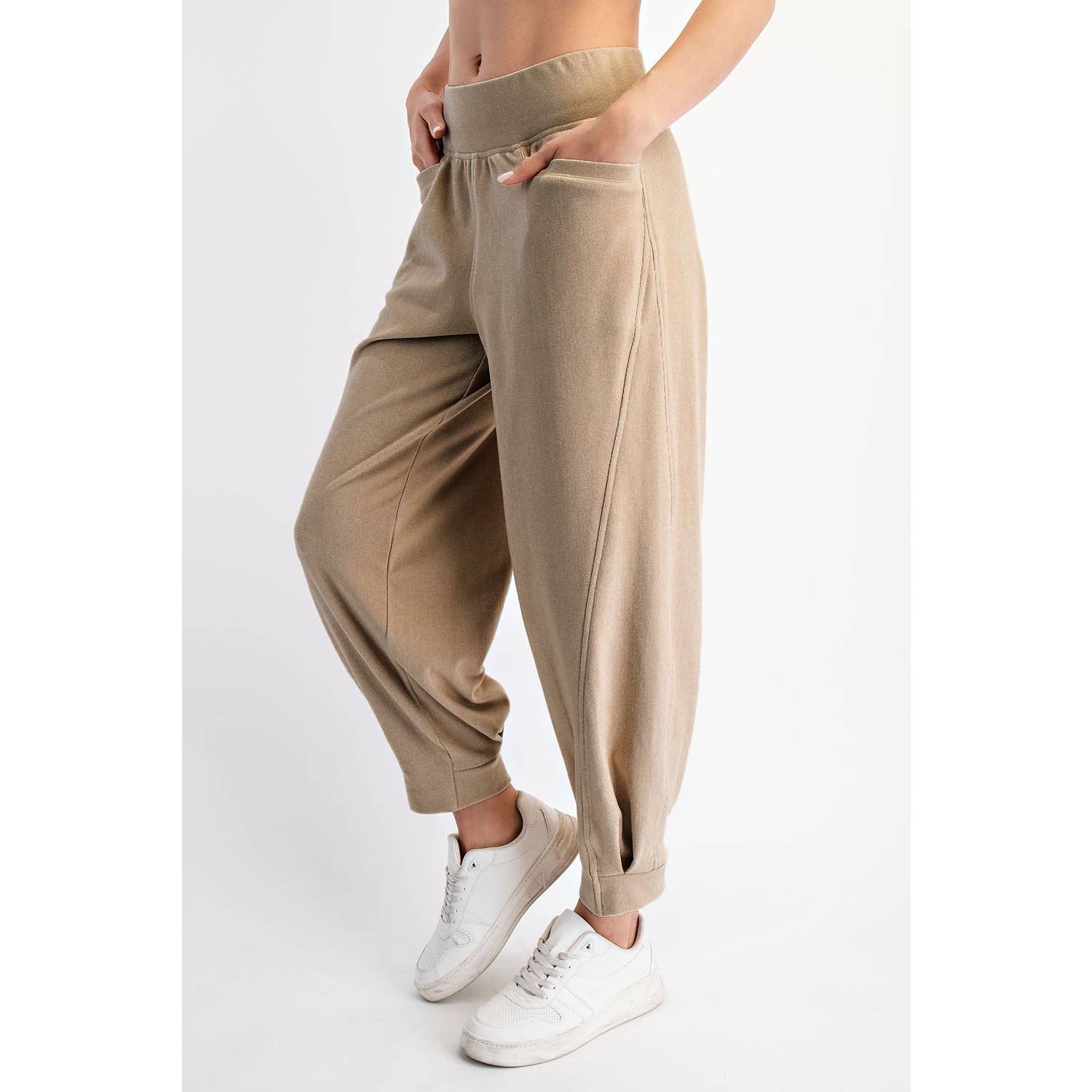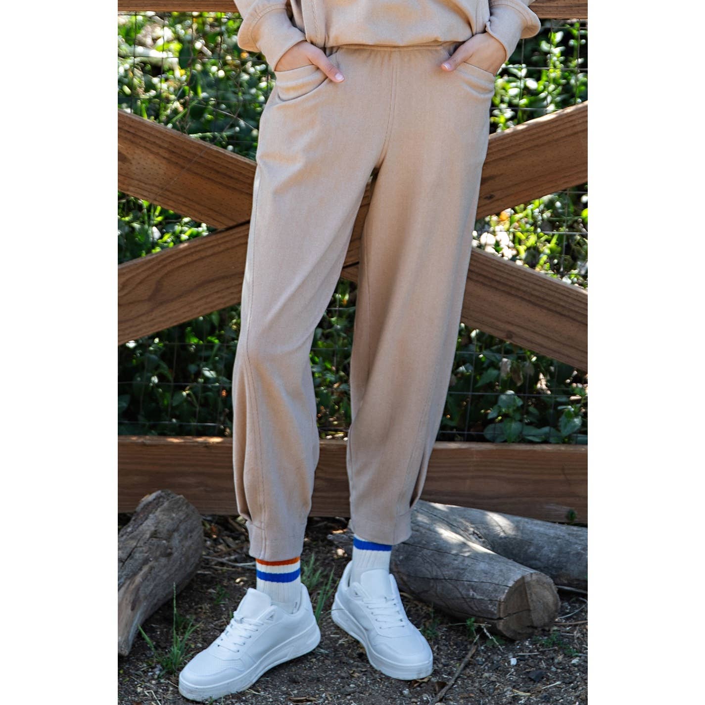 Crafted from ultra-soft, double-side brushed 1x1 rib fabric, these cocoon-fit jogger pants offer both comfort and style. The relaxed fit ensures ease of movement, while seam details enhance the overall design. Featuring side pockets for practicality, these joggers are the perfect blend of cozy luxury and casual chic. Ideal for lounging or a laid-back day out. Features: - 1x1 rib brushed fabric - Ultra soft double side brushed - Relaxed fit - Cocoon fit jogger pants - Seam details - Side pockets Model is 5'8" and wearing size Small. Fabric: 90% Polyester, 10% Spandex
