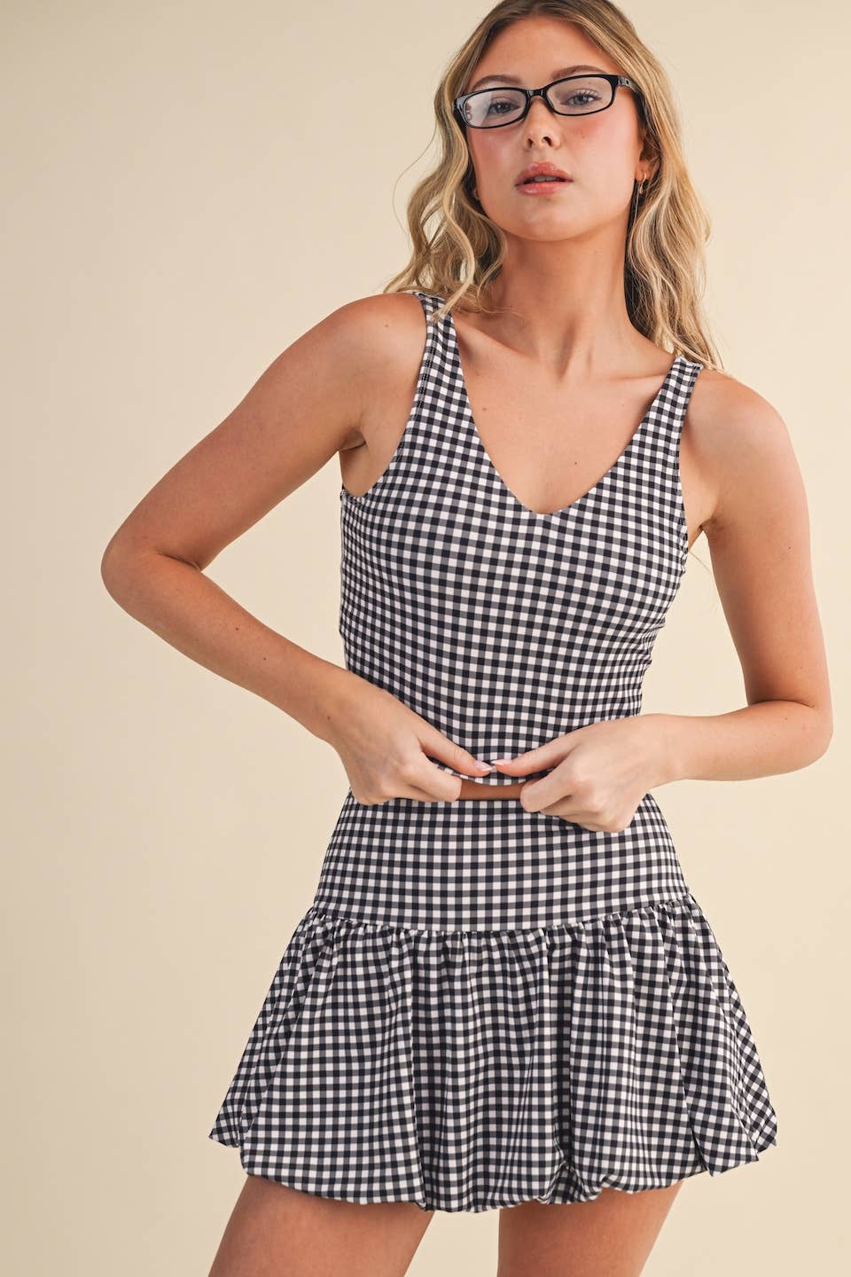 Gingham Print Aligned Performance Cropped Tank & Skirt SET