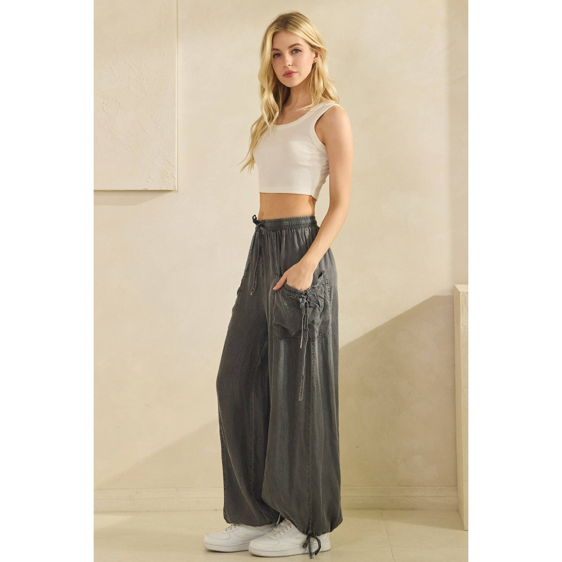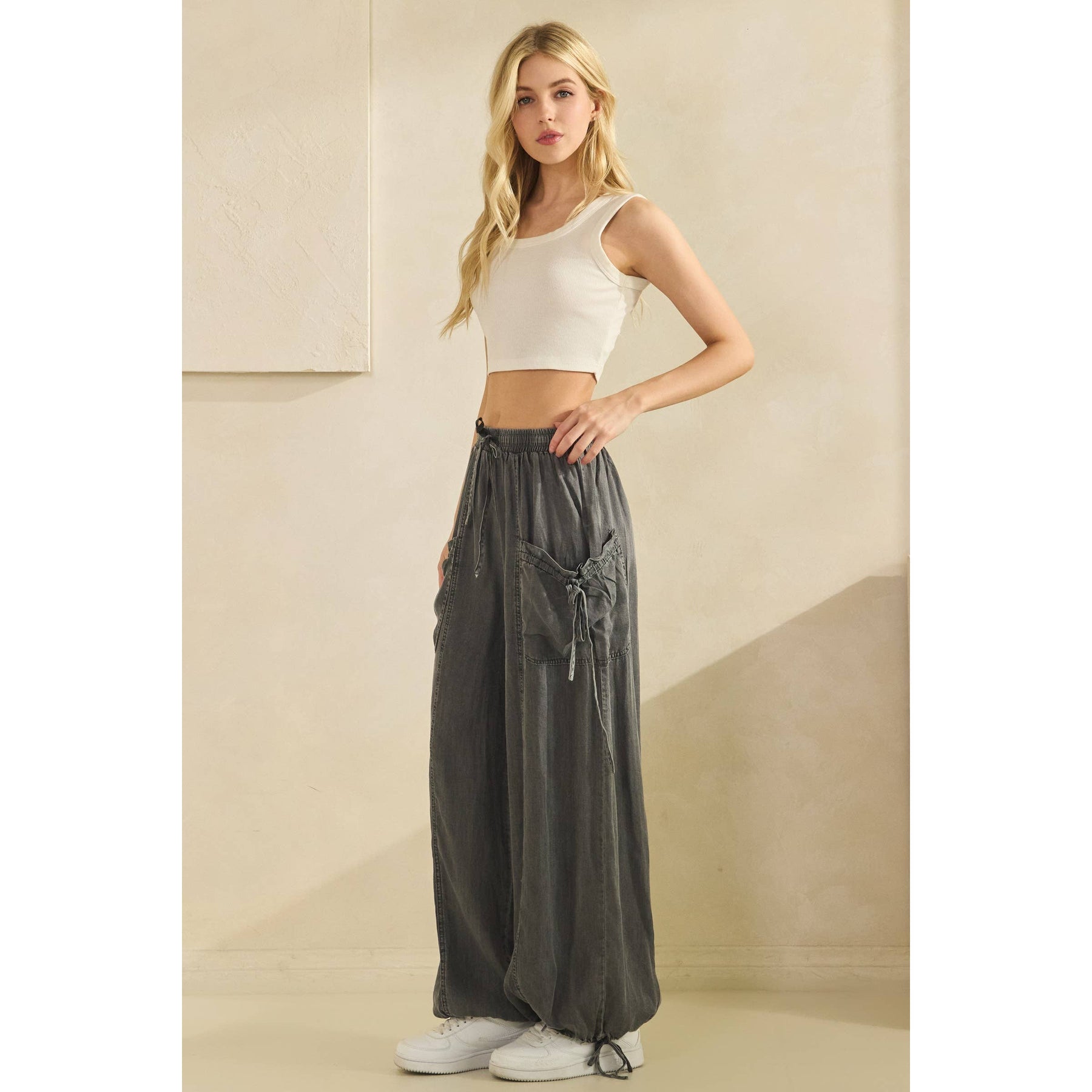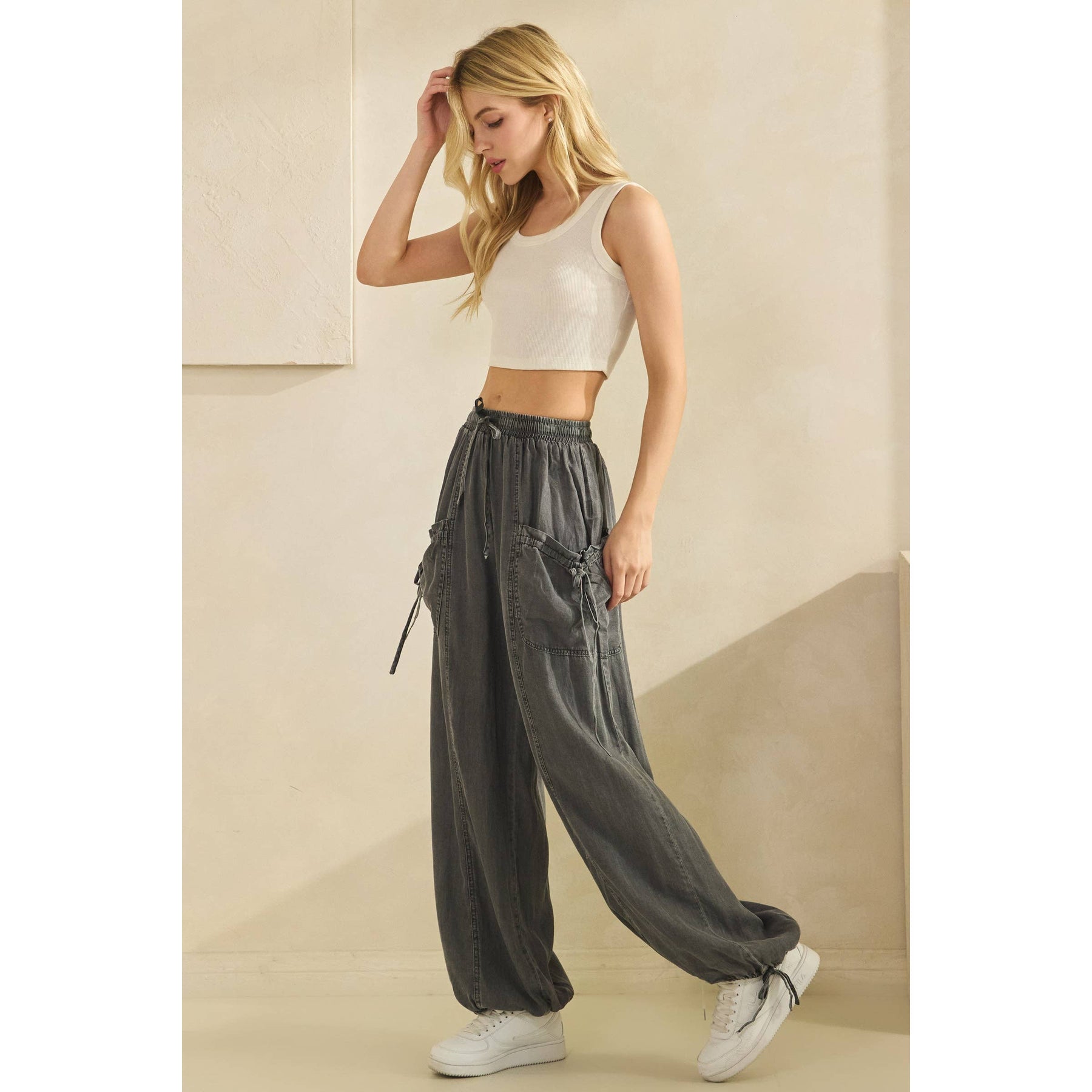 THESE PANTS BLEND URBAN EDGE WITH BOHO COMFORT, MAKING THEM A MUST-HAVE FOR OFF-DUTY DAYS.THE FLOWY FABRIC AND CARGO DETAILS GIVE THEM A RELAXED,EFFORTLESSLY COOL VIBE,PERFECT FOR RUNNING ERRANDS TO FESTIVALS WEEKENDS.