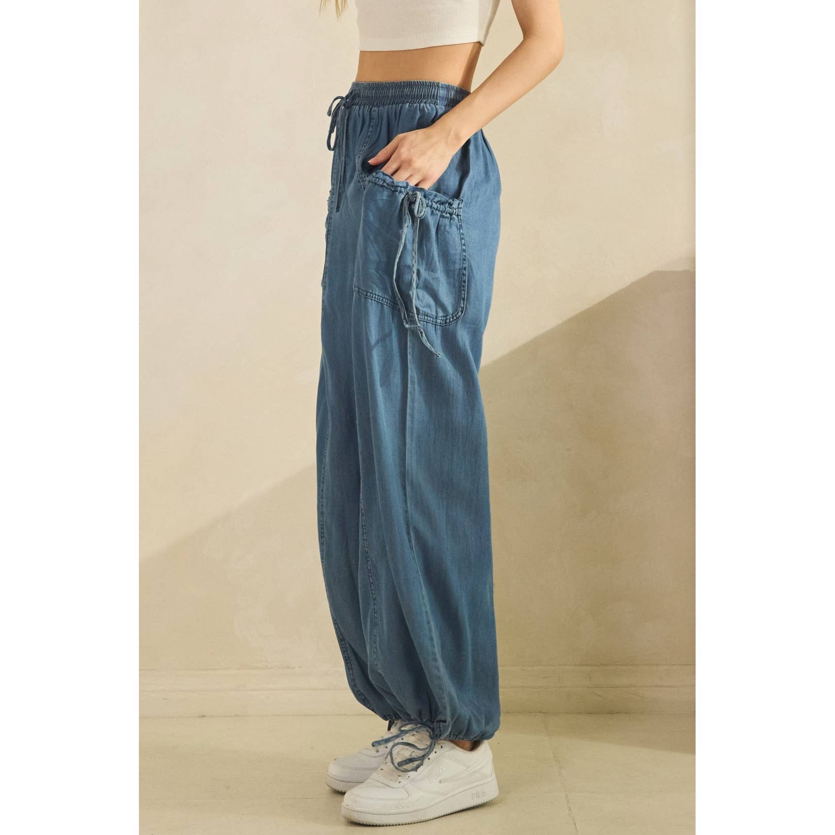 DRAWSTRING UTILITY CARGO-STYLE WIDE-LEG JOGGER