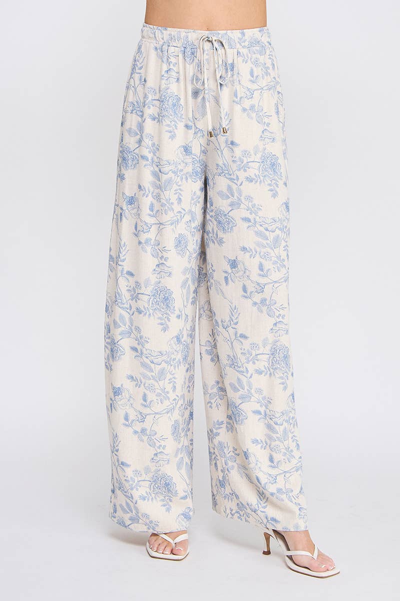 Printed Soft Linen Elastic Tie Waist Wide Leg Pants With Side Pockets, Viscose, Linen, These pants are the PERFECT comfy statement piece!!
