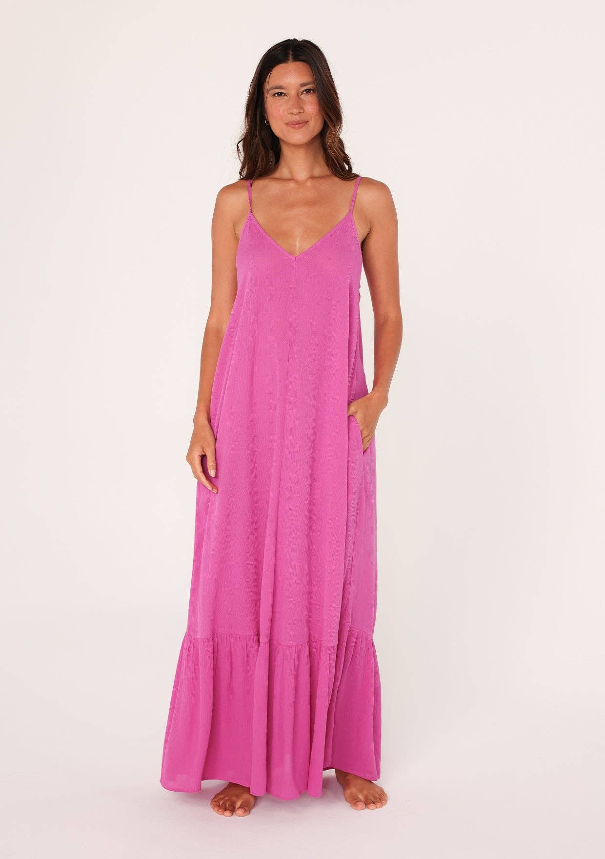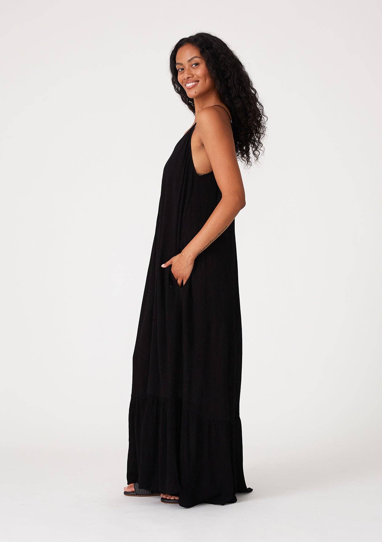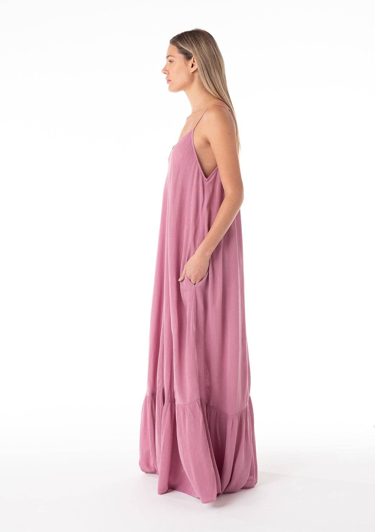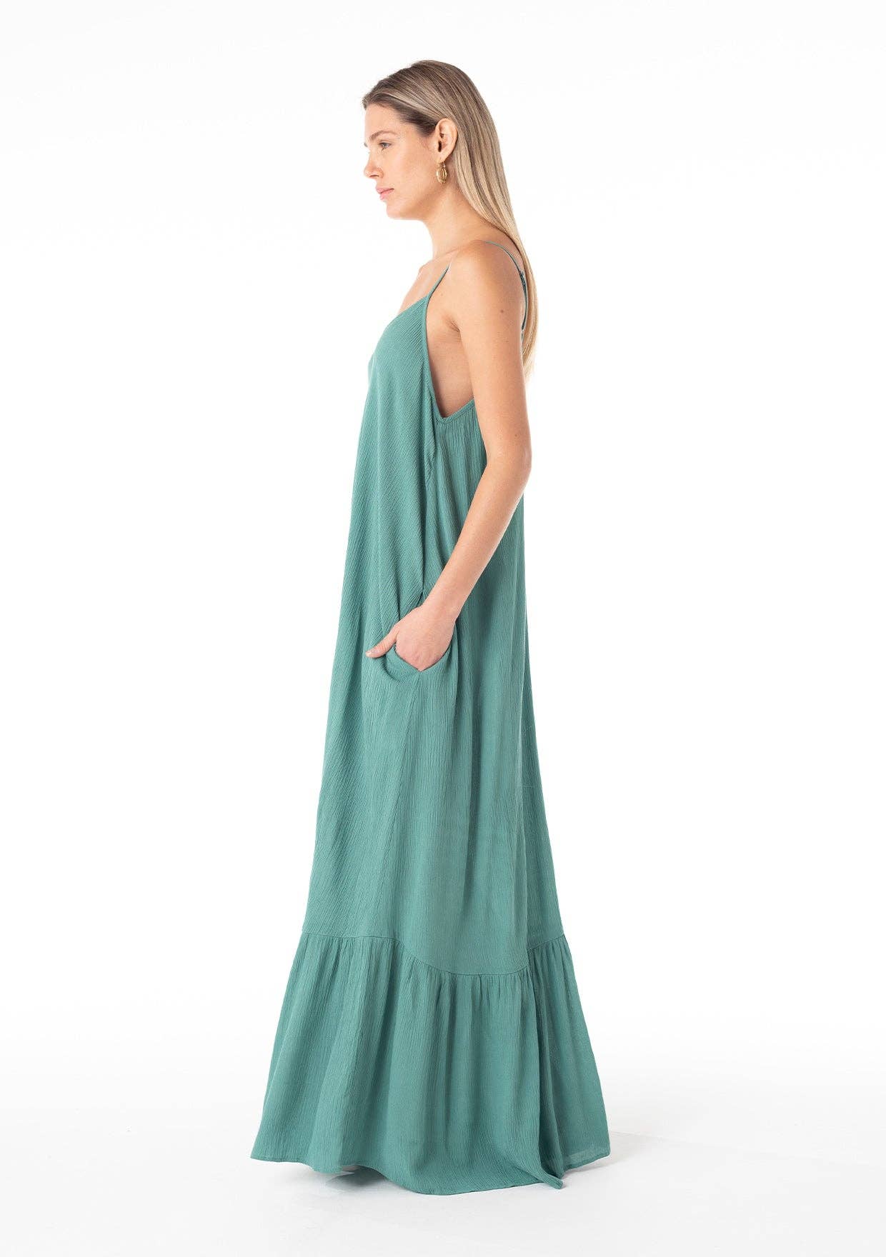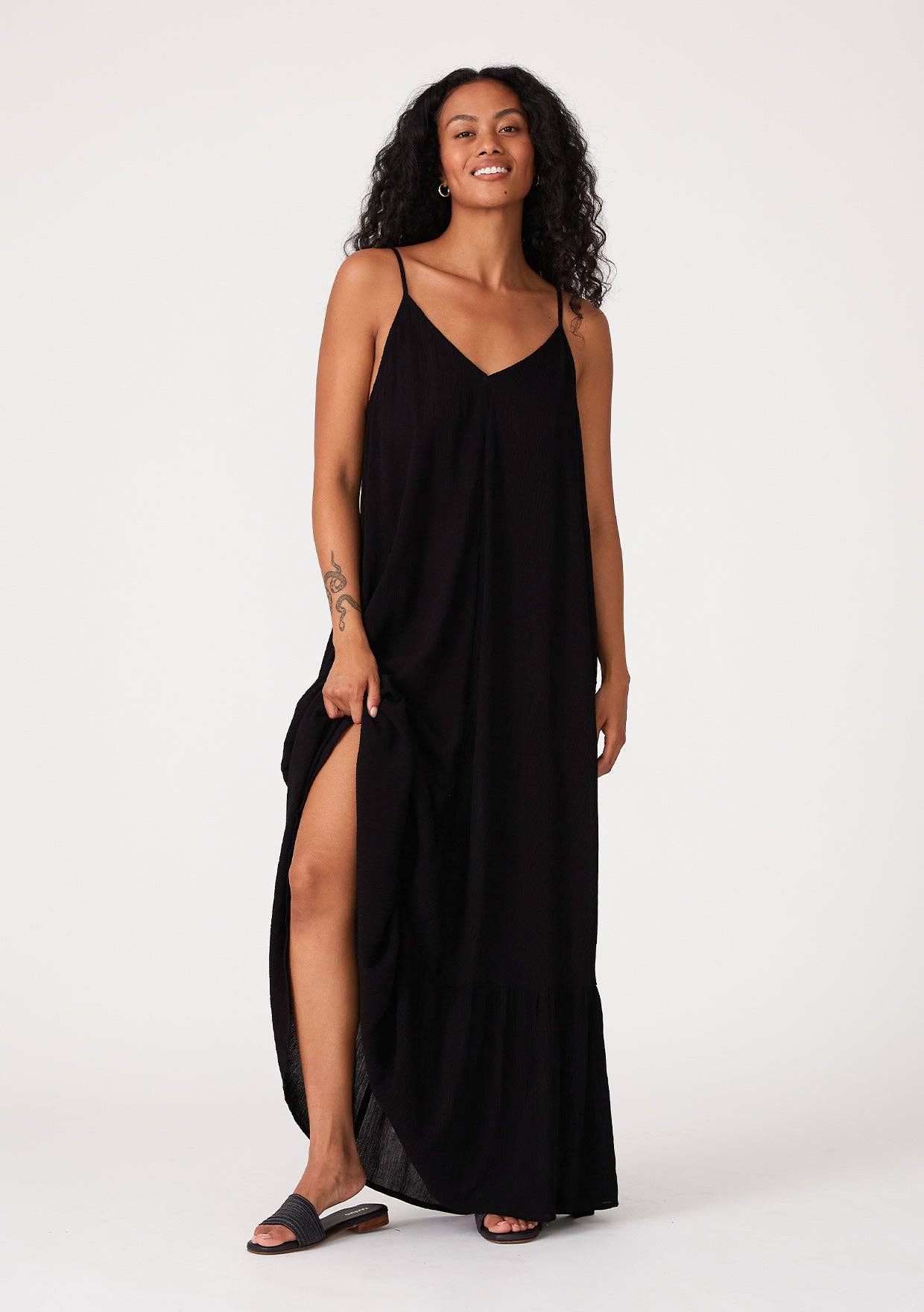 Our ultra-versatile, flowy, and slightly sheer maxi dress made of rayon gauze features a v-neckline, adjustable spaghetti straps, essential side pockets, and a cute tiered hem for movement and shape. Add this stunning maxi dress to your resort collection as a beach cover-up or keep it on-hand for as a spring/summer staple. Either way, this Lovestitch fan-favorite is sure to get some attention!