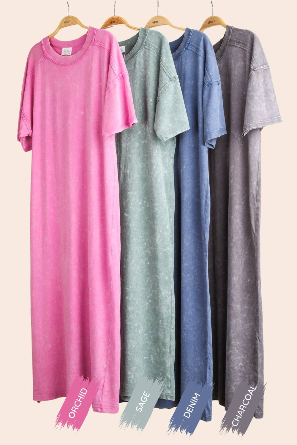 ND31601-Mineral Washed Casual Comfy Midi Dress