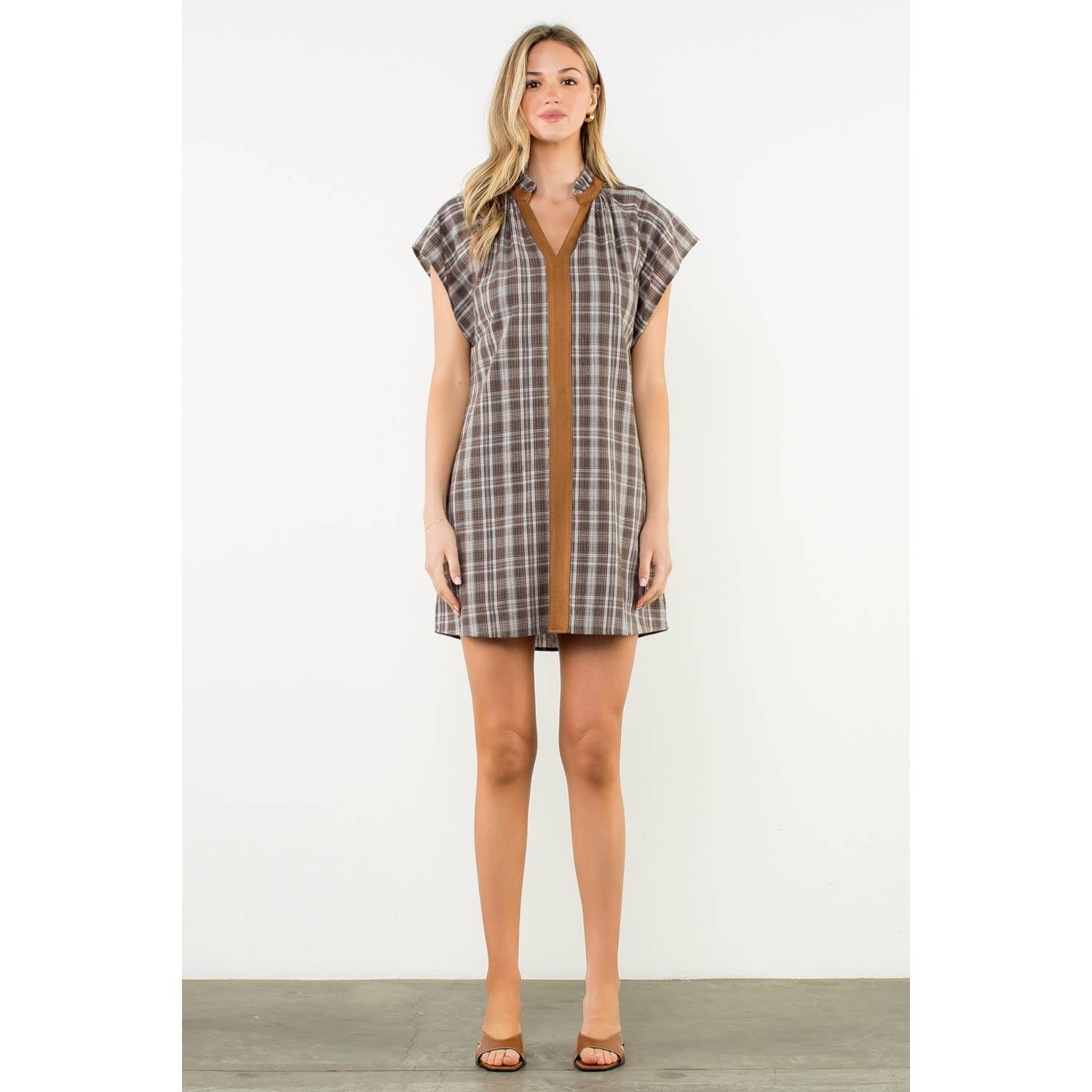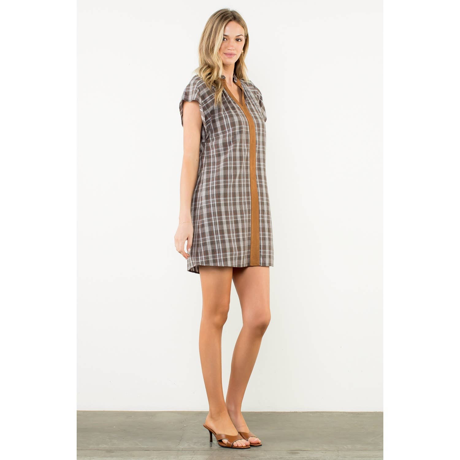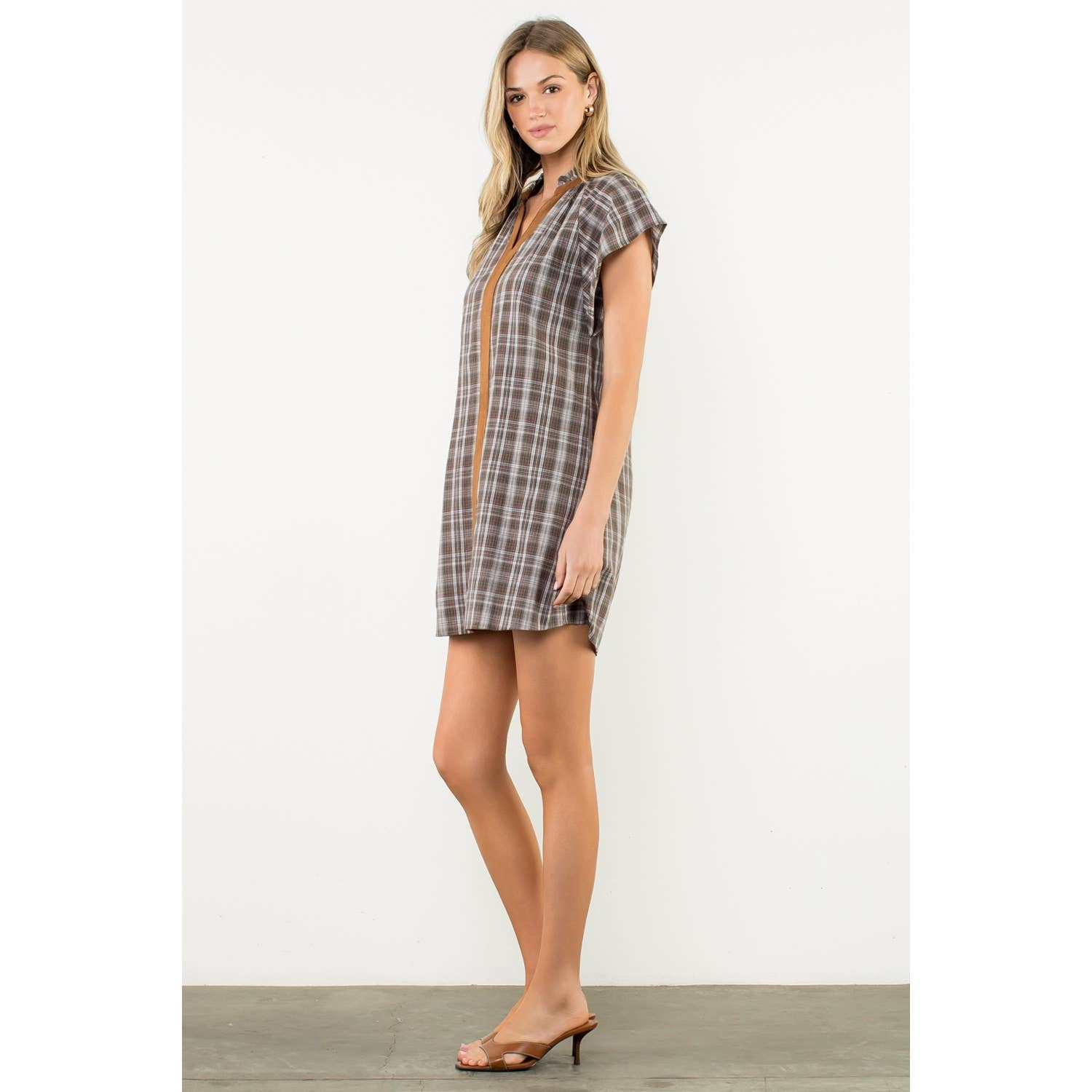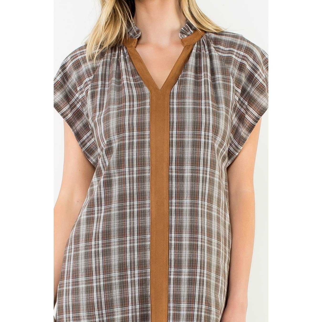Plaid V-Neck Contrast Trim Dress