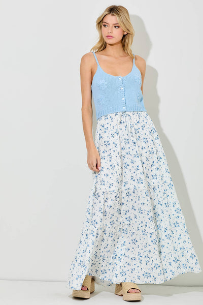 SLEEVLESS FLORAL PRINT TIERED FLOWY MAXI DRESS
