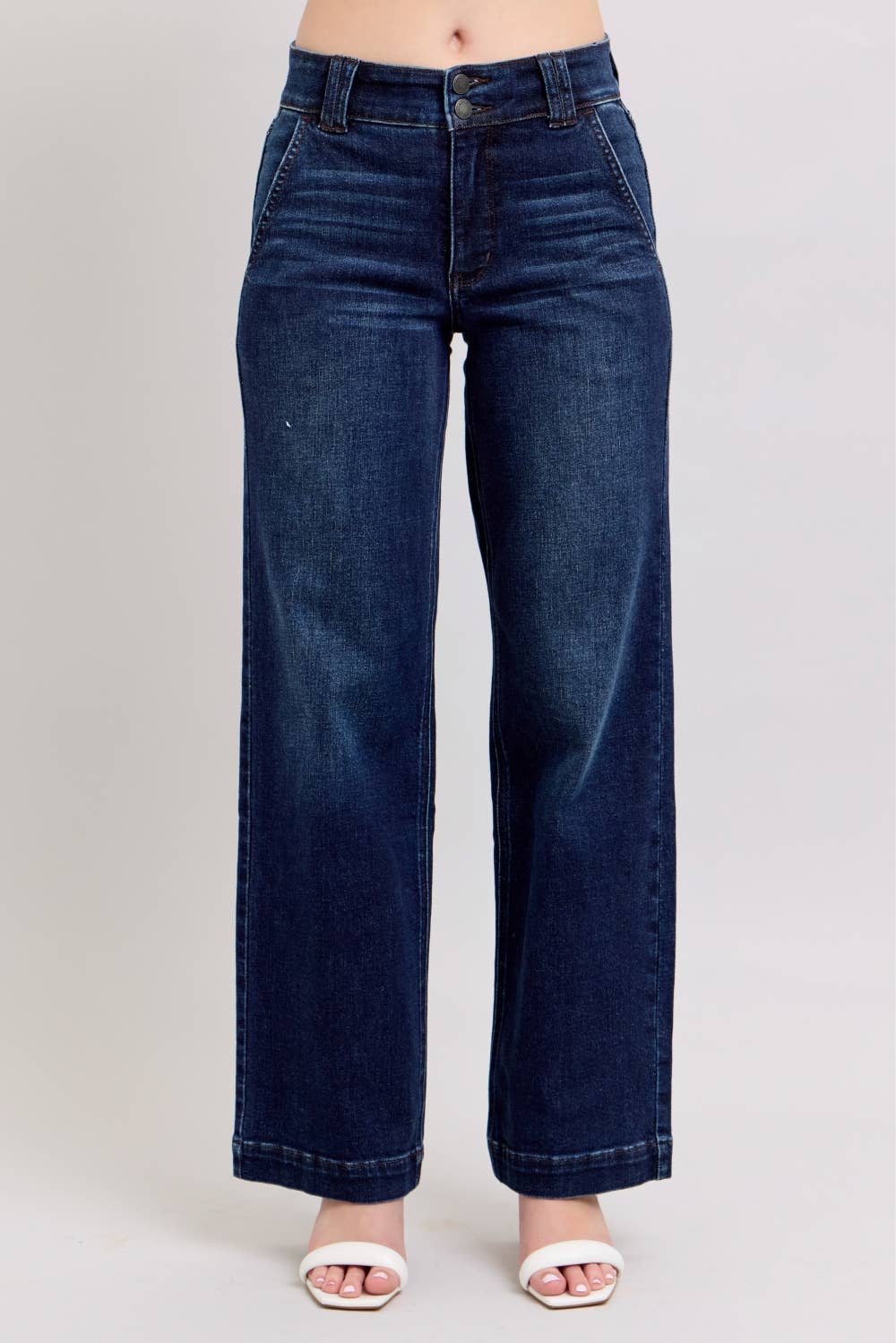 Meet our HW Wide Leg jeans from Judy Blue Jeans. These jeans are a testament to our dedication to superior quality and trend-setting design. Tailored to offer a unique blend of timeless appeal and a modern twist, these jeans capture the laid-back, effortlessly chic vibe of California. Whether you're planning a casual day out or looking to elevate your wardrobe, these wide-leg jeans provide both style and comfort. Crafted with love, every stitch speaks of our commitment to creating jeans that delight every denim aficionado. Explore the blend of innovation and craftsmanship with Judy Blue Jeans.