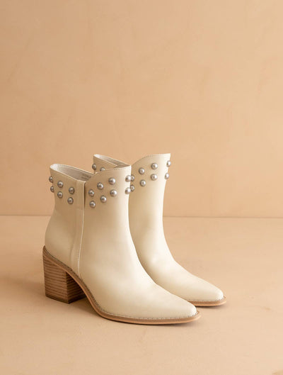 The Alofi Beige | Elegant Bootie With Metallic Stud Collar