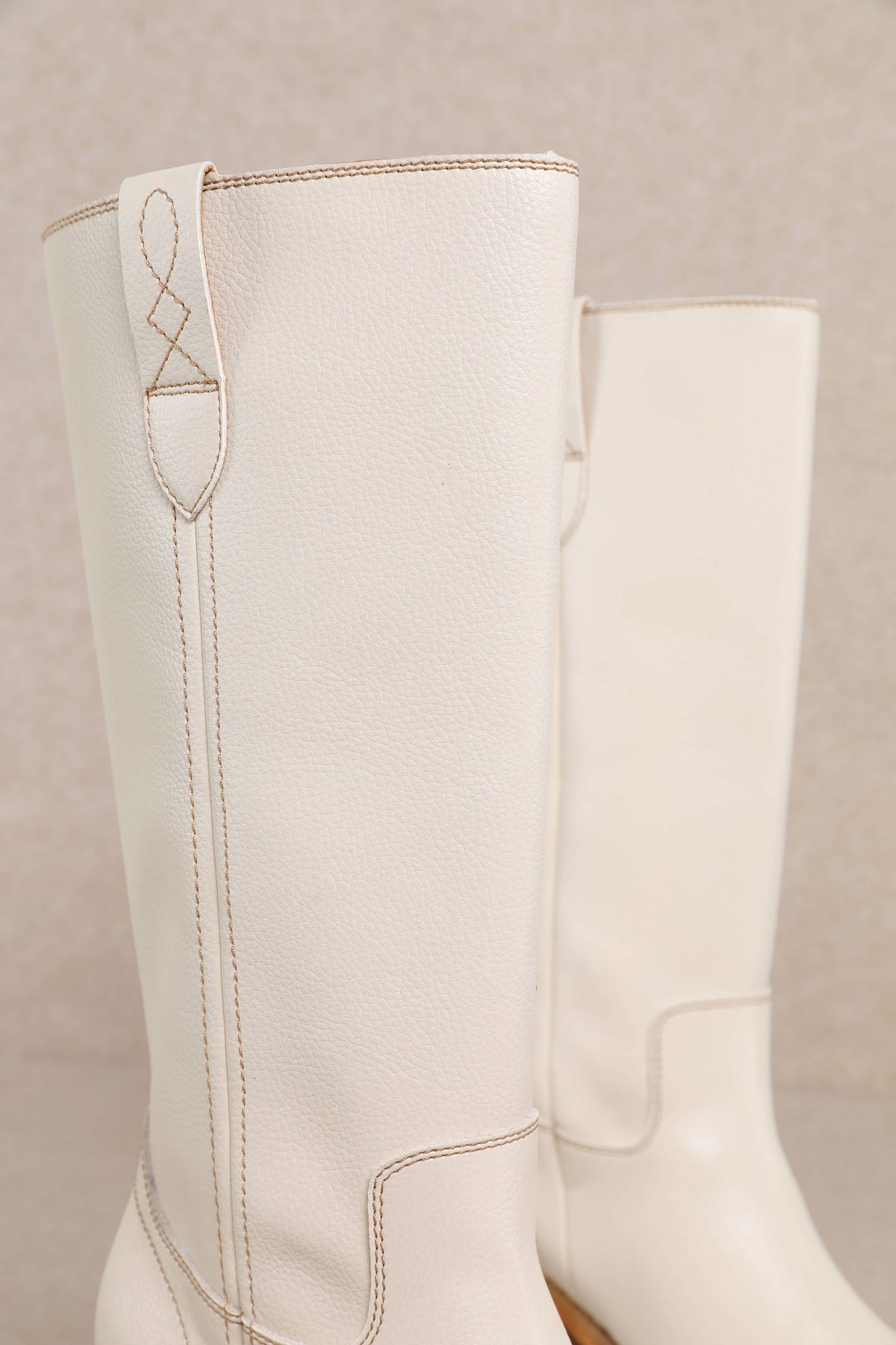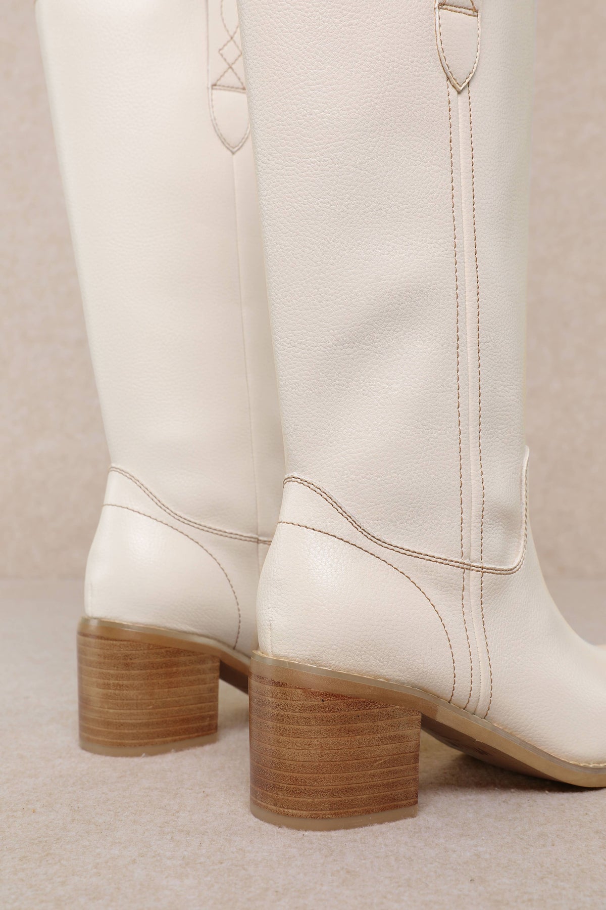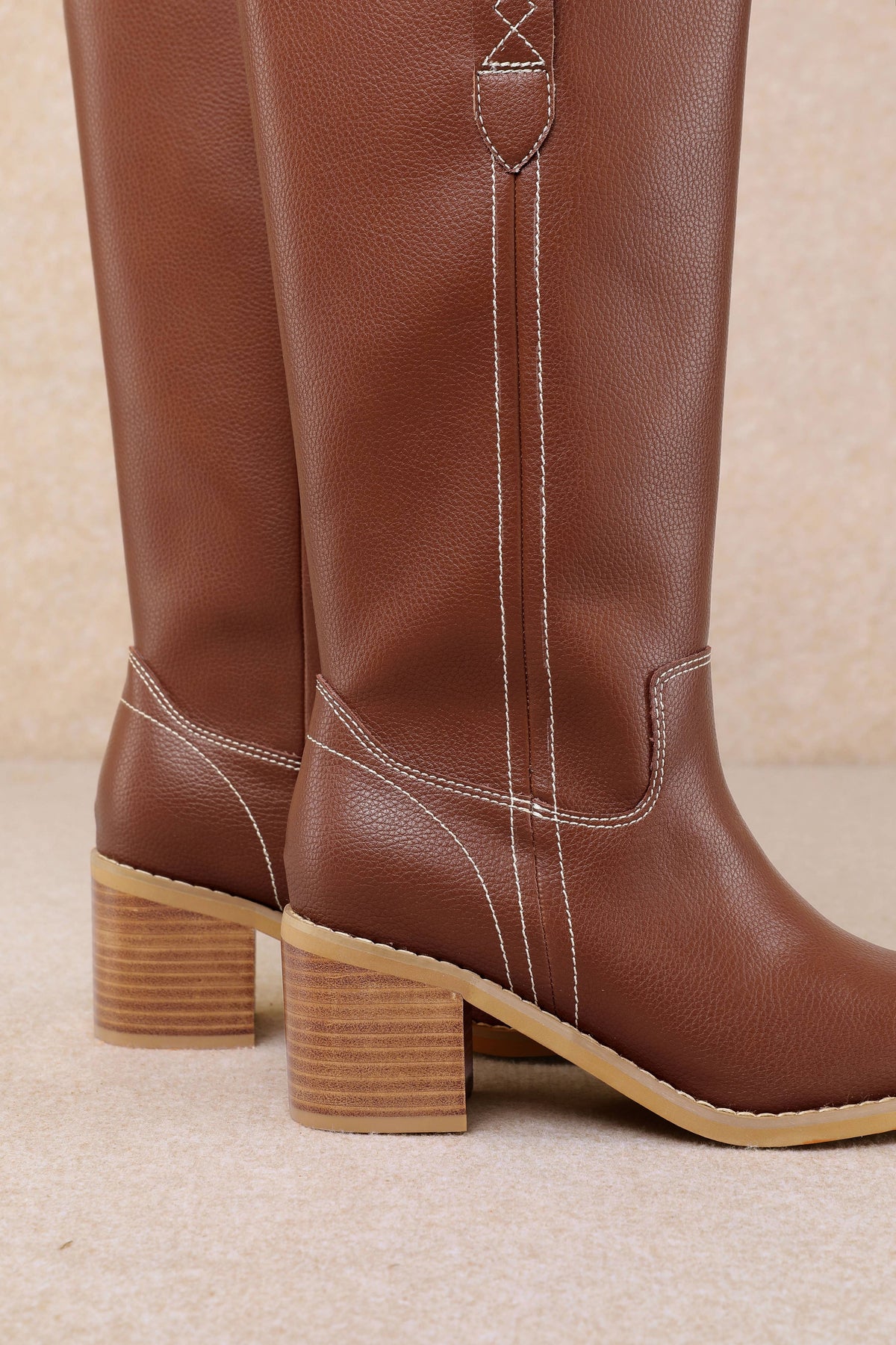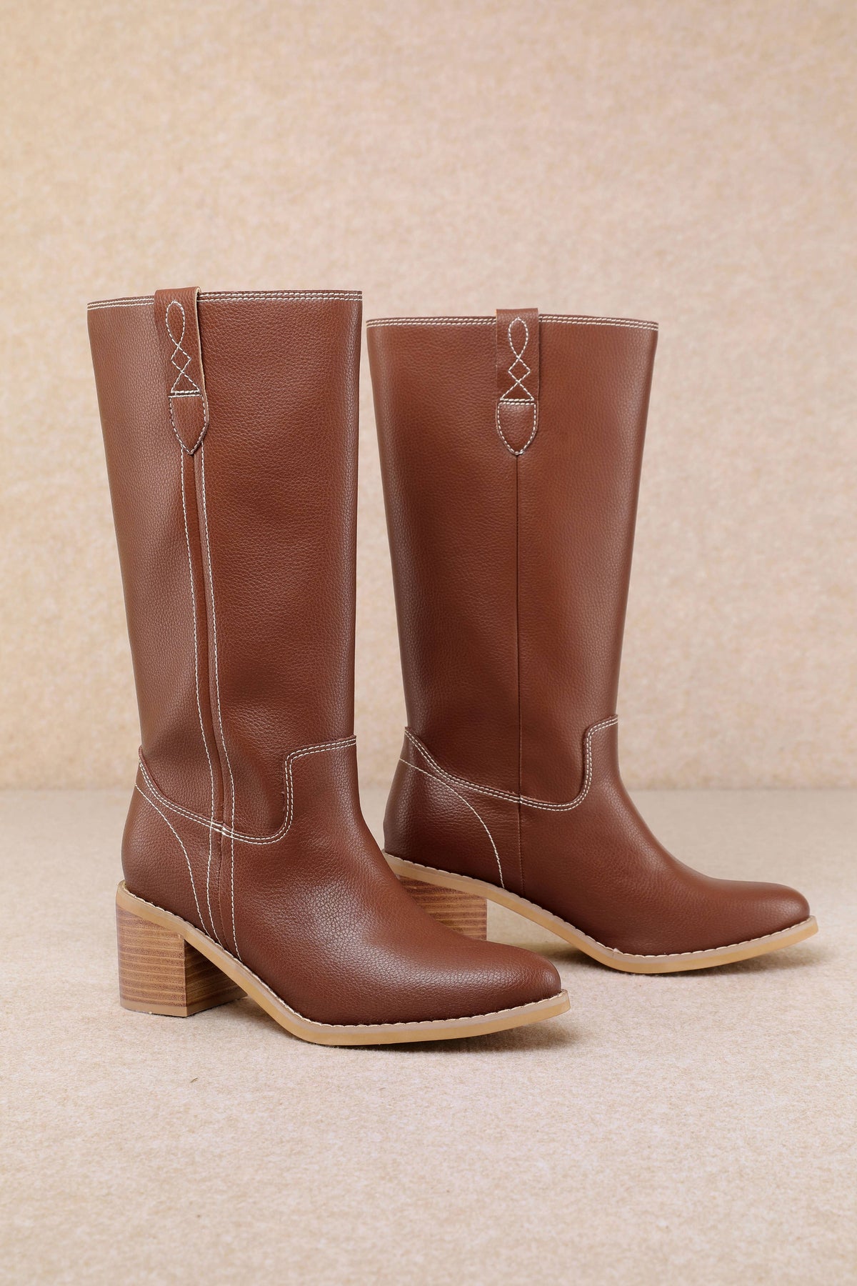 A sleek Western-inspired mid-calf boot designed with a smooth upper, subtle stitching, and classic pull tabs. Finished with a comfortable stacked heel and almond toe, this versatile style delivers timeless appeal with a modern, polished silhouette perfect for everyday wear or dressed-up looks.
