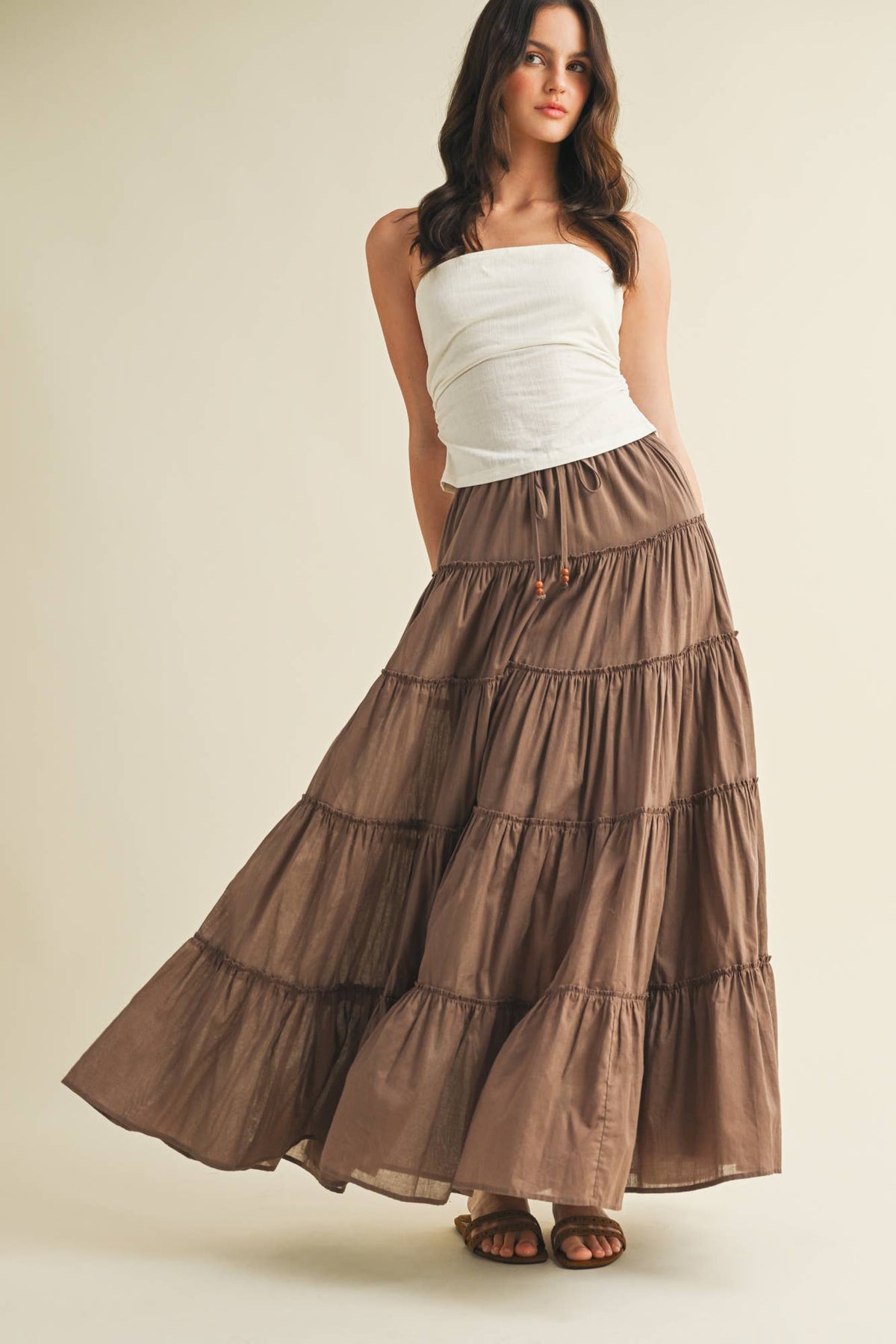 DRAWSTRING DETAIL TIERED MAXI SKIRT Size + Fit - Model is wearing size S - Measurements taken from size S - 5'9"