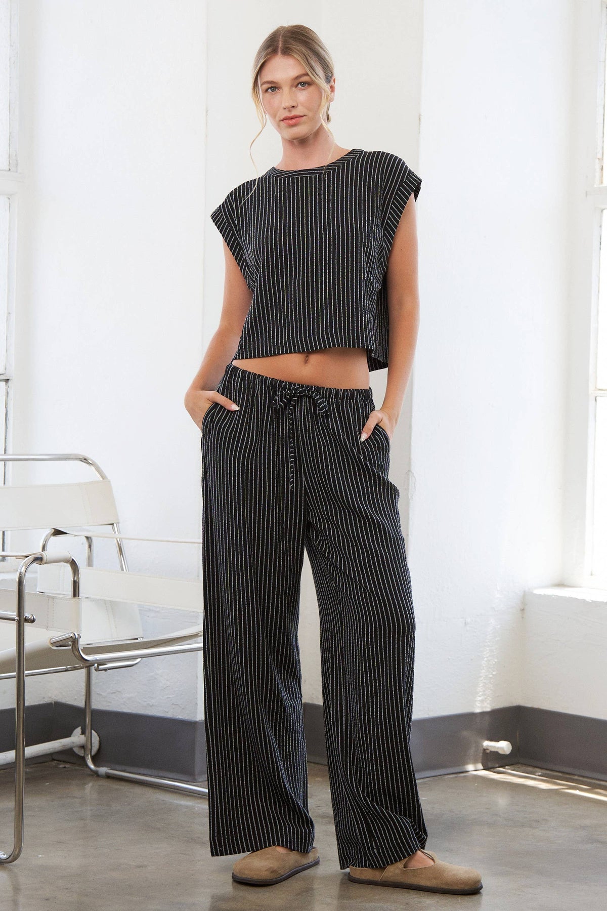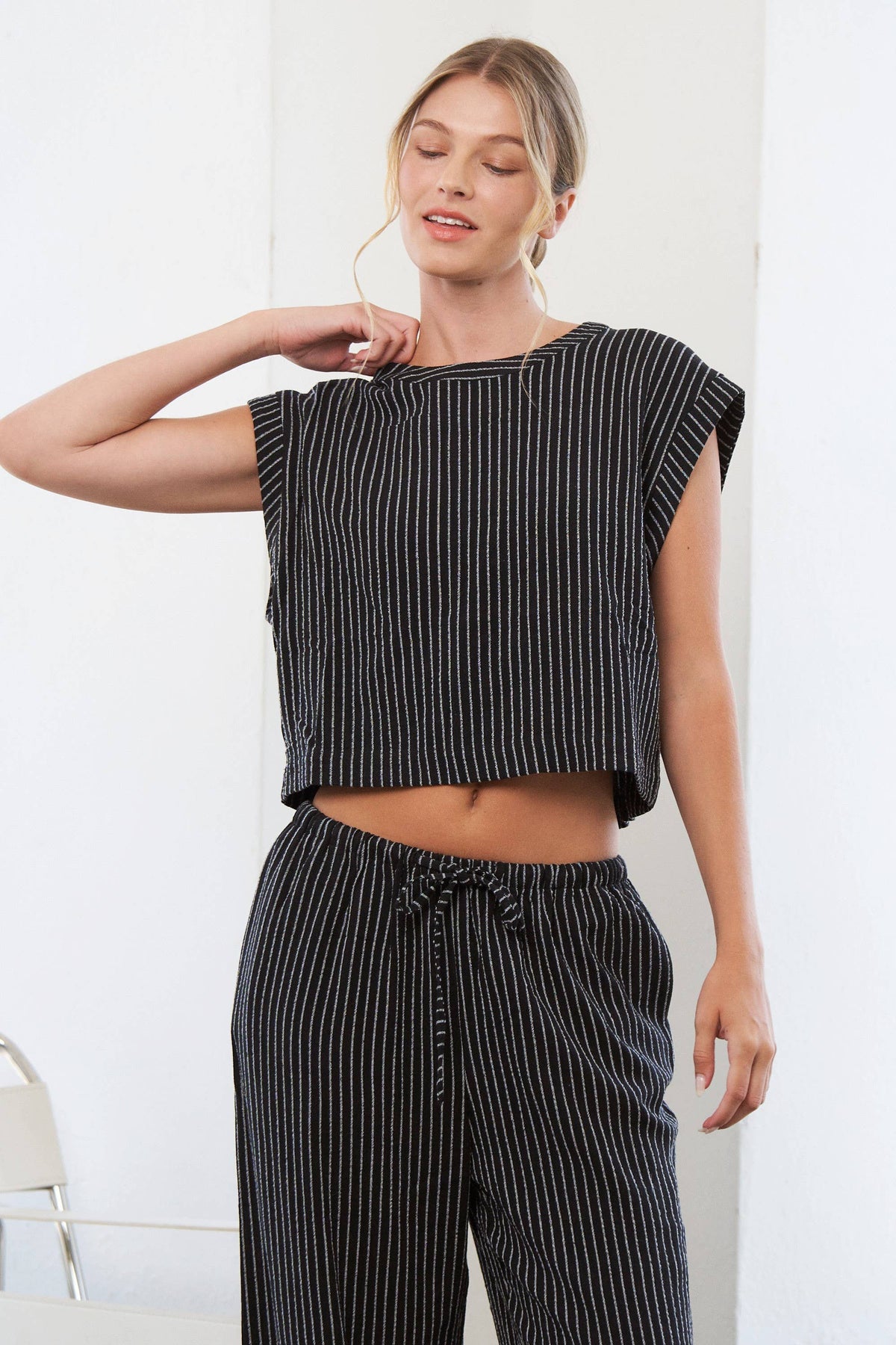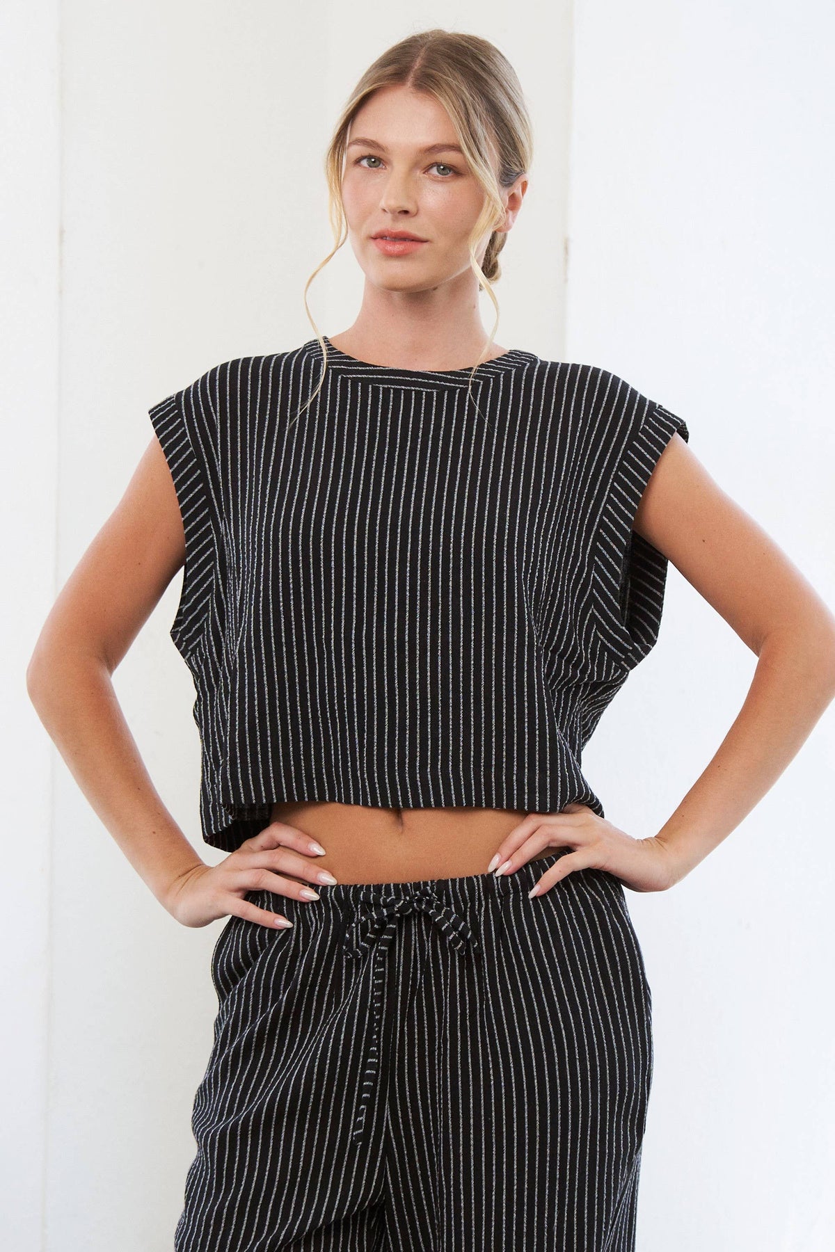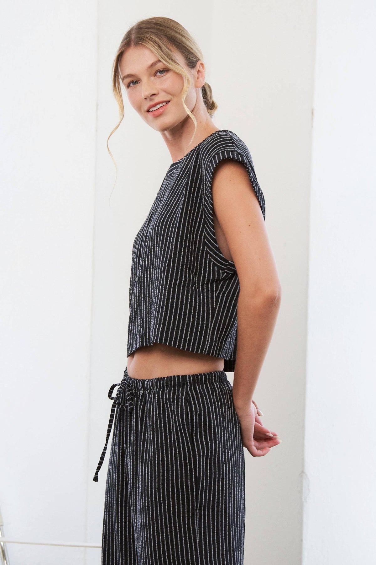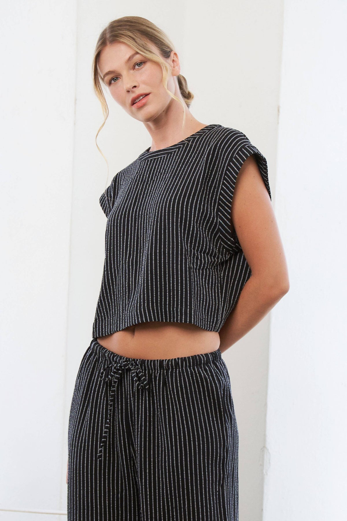 - Cropped length - Sleeveless - Striped pattern - Loose fit - Matching set option 80% VISCOSE 20% LINEN