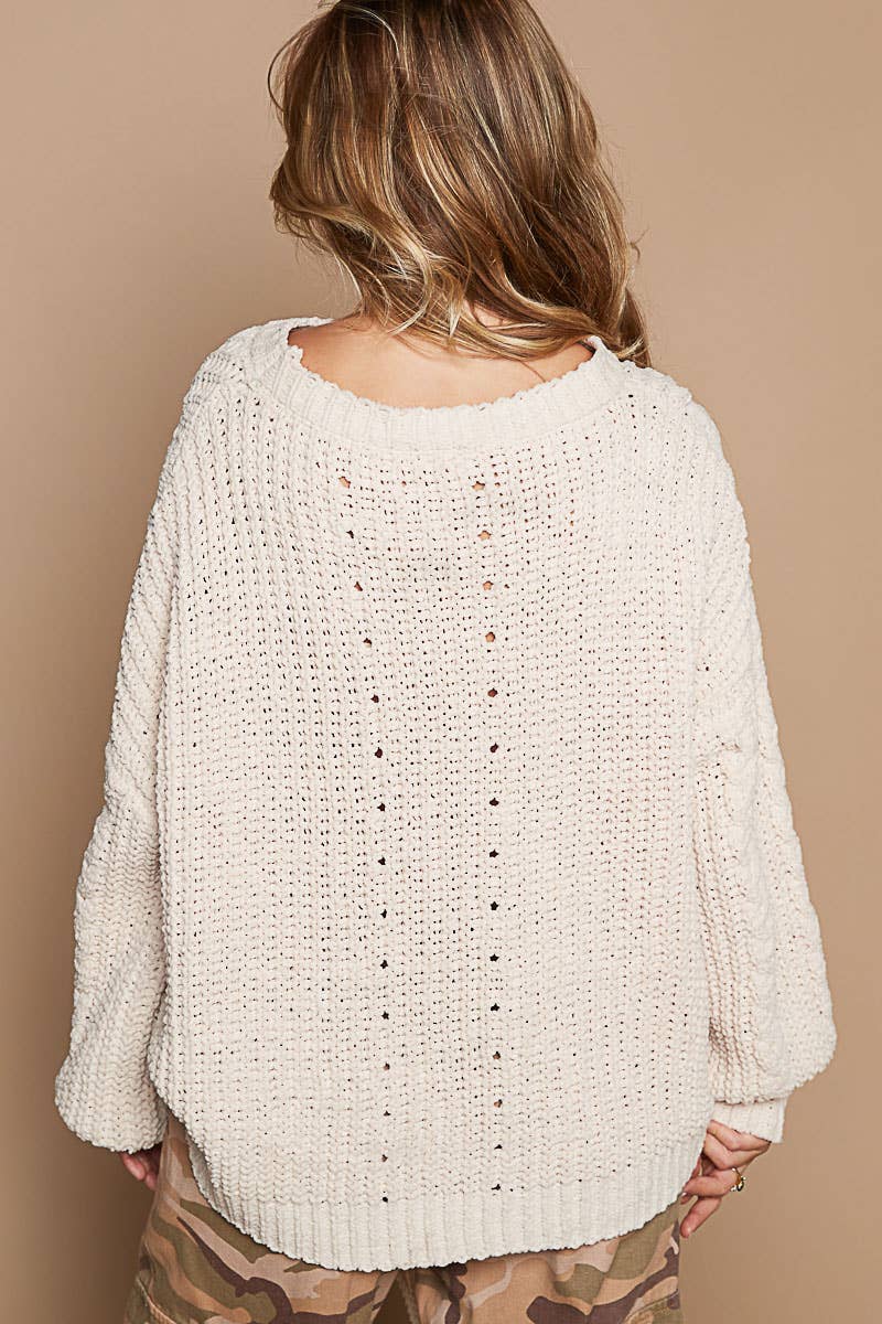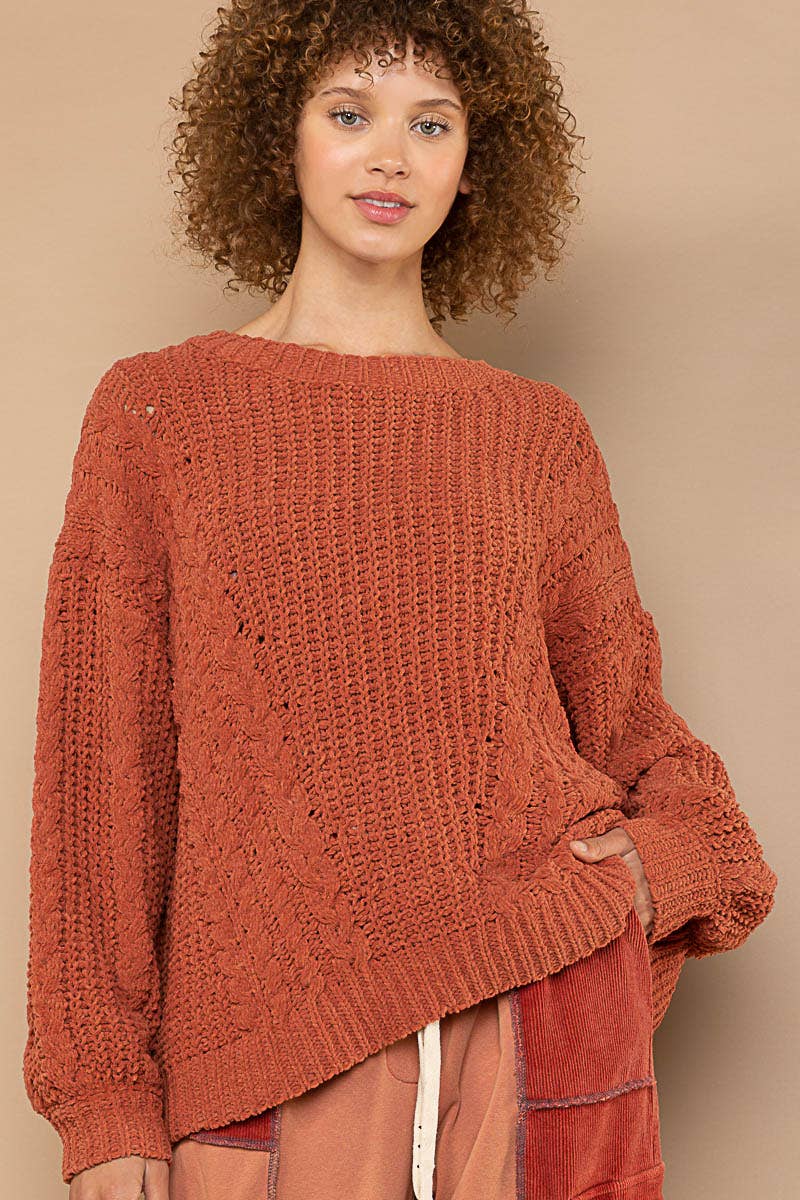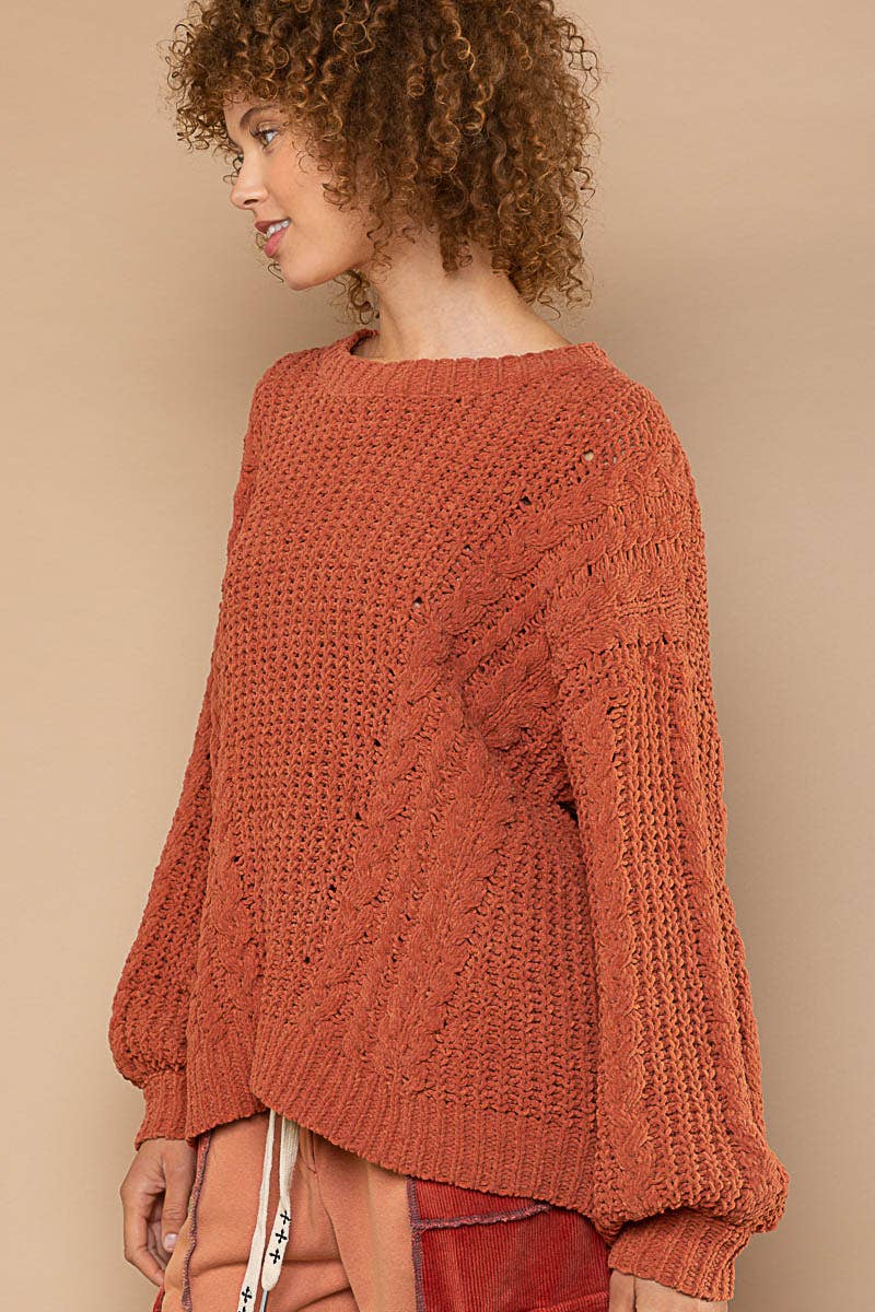 ONE LEFT Cable knit round neck chenille pullover sweater