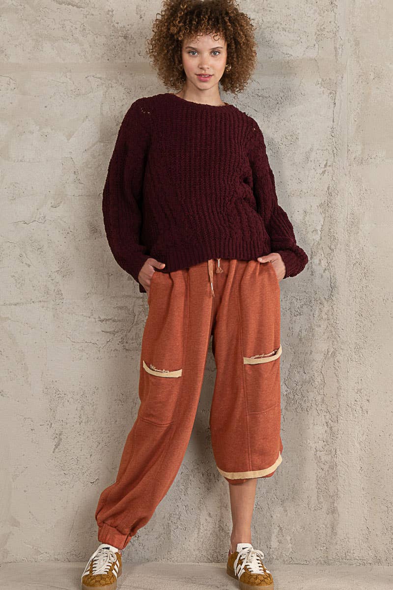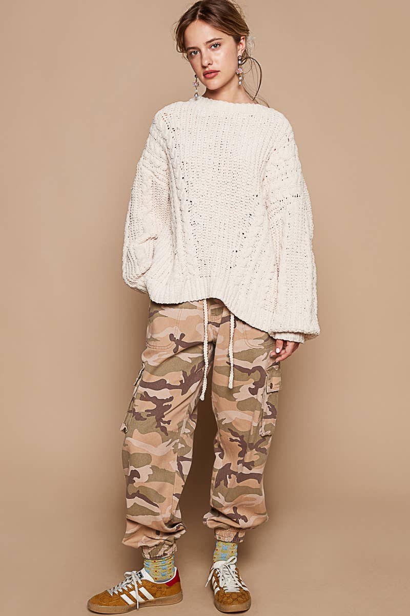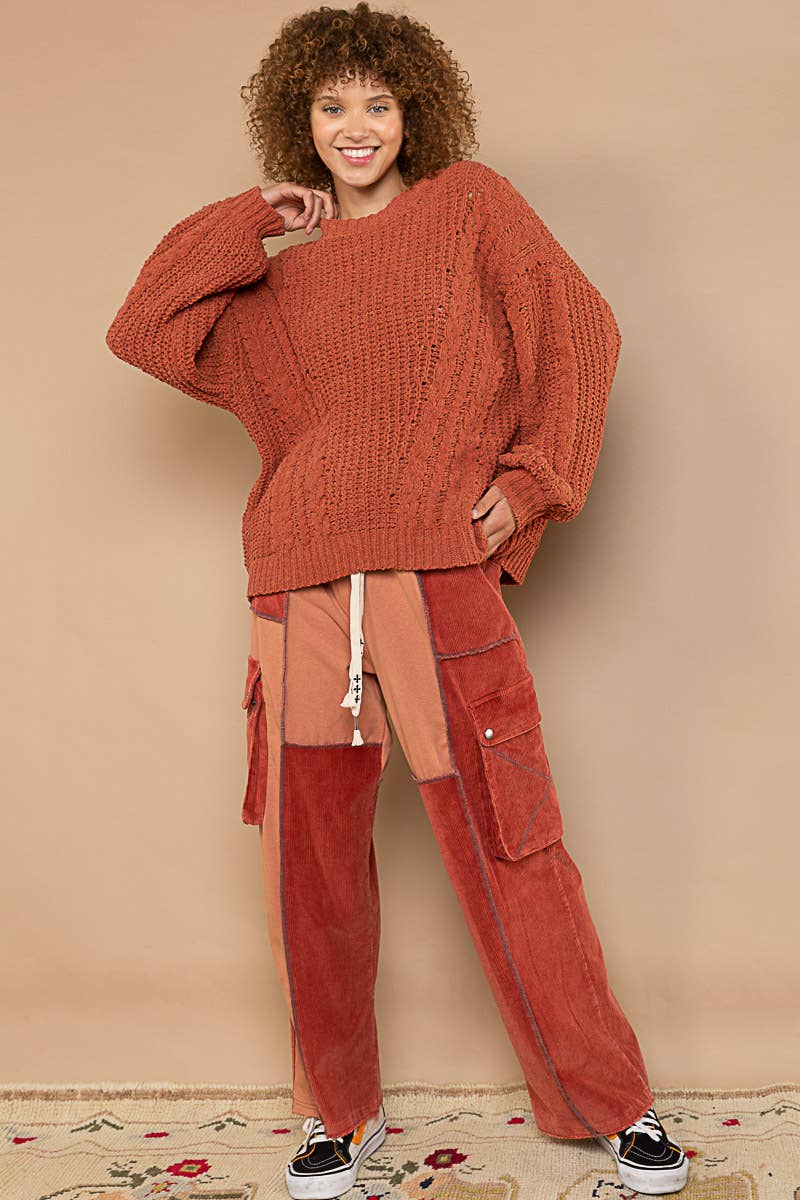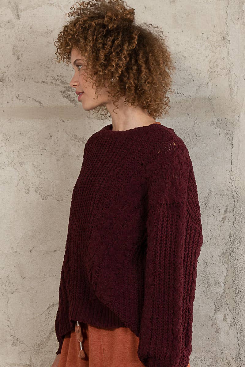 ONE LEFT Cable knit round neck chenille pullover sweater