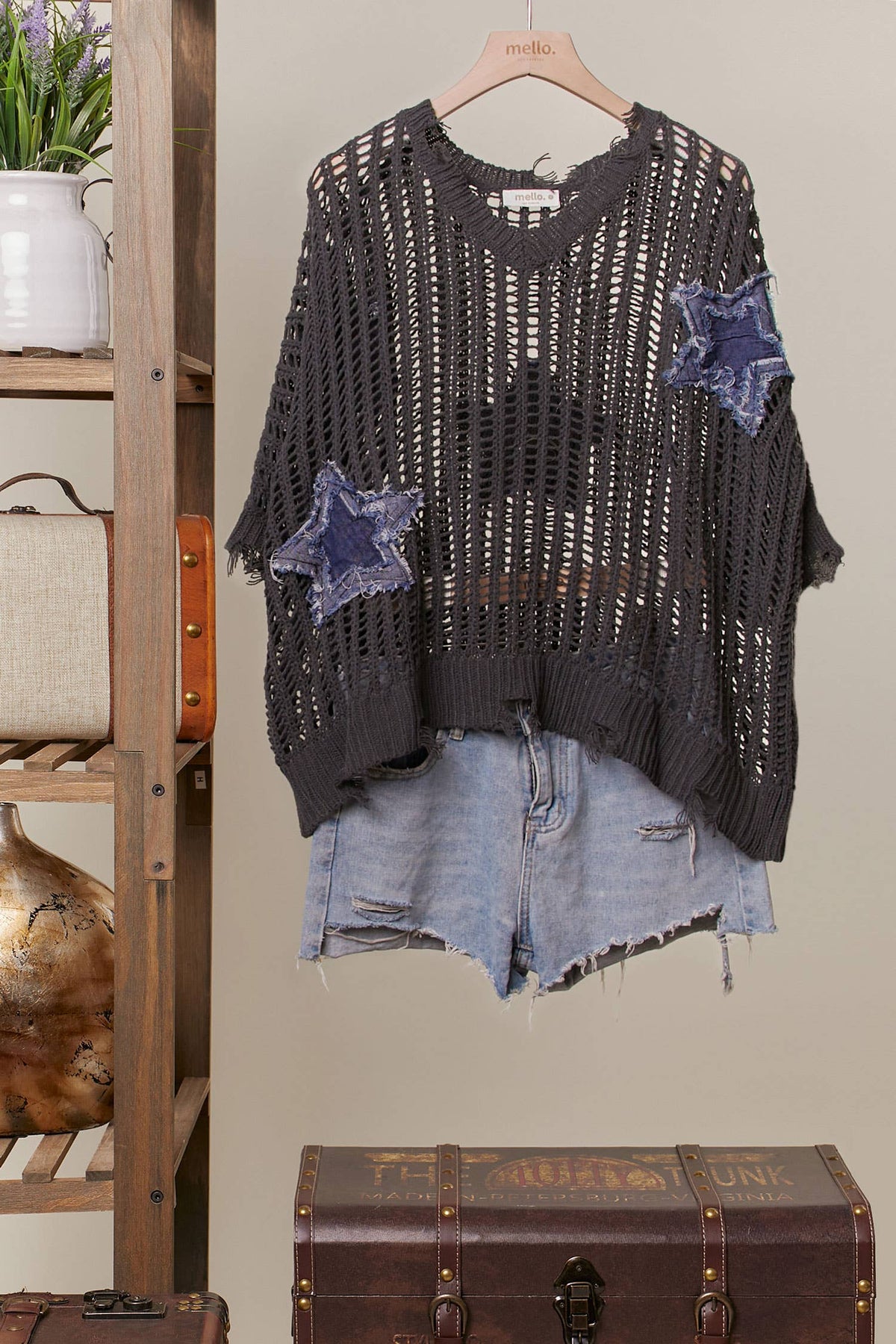 Distressed Star Knit Pullover
