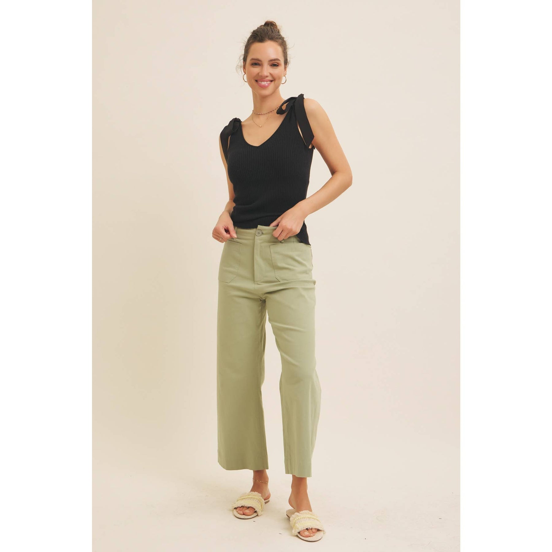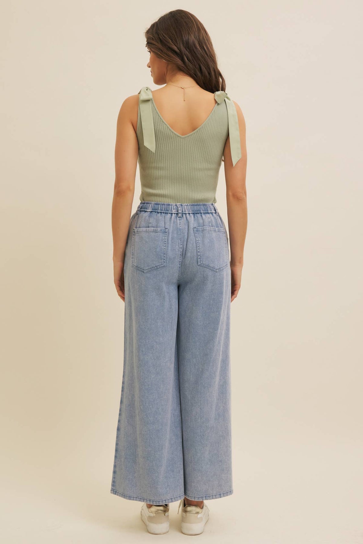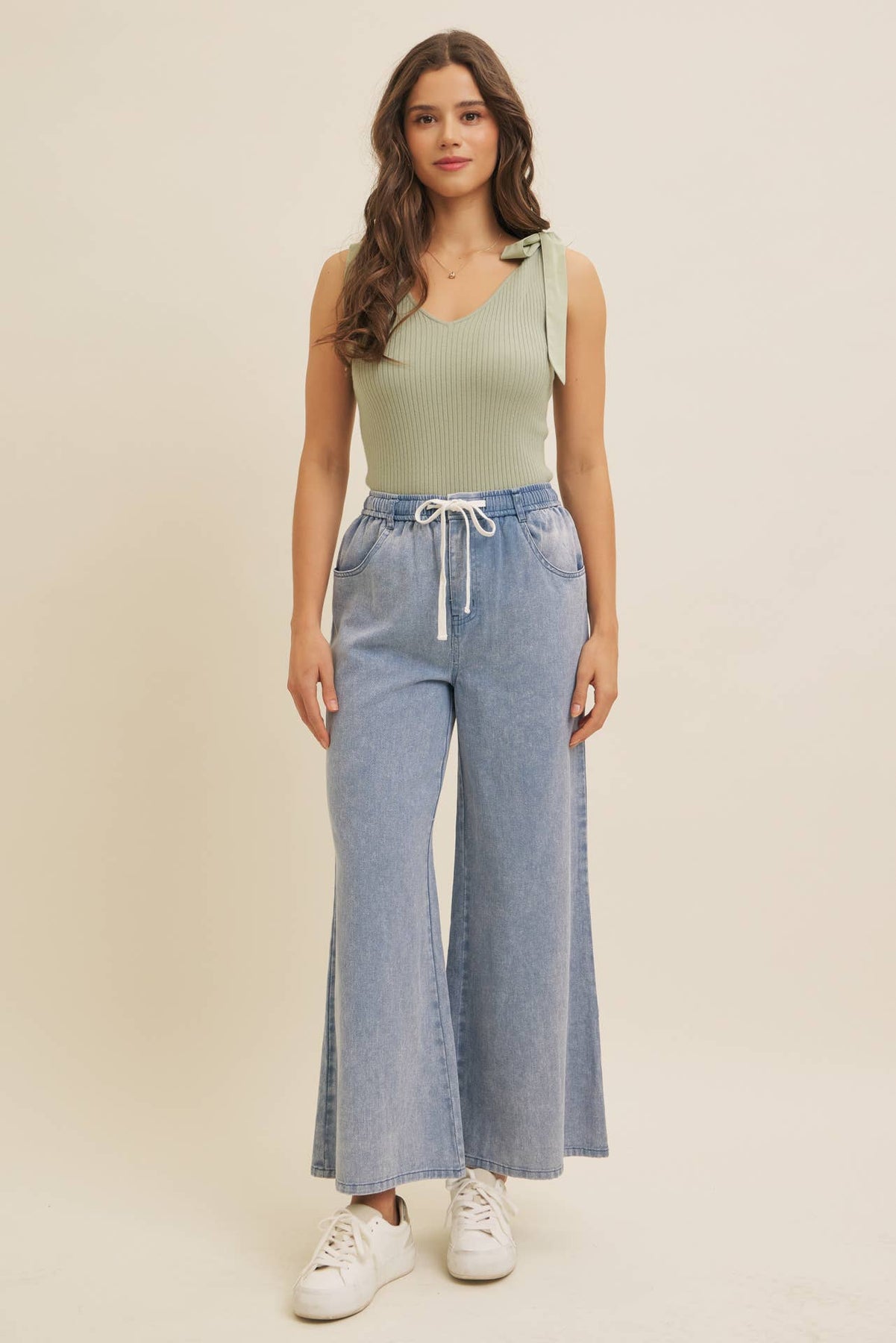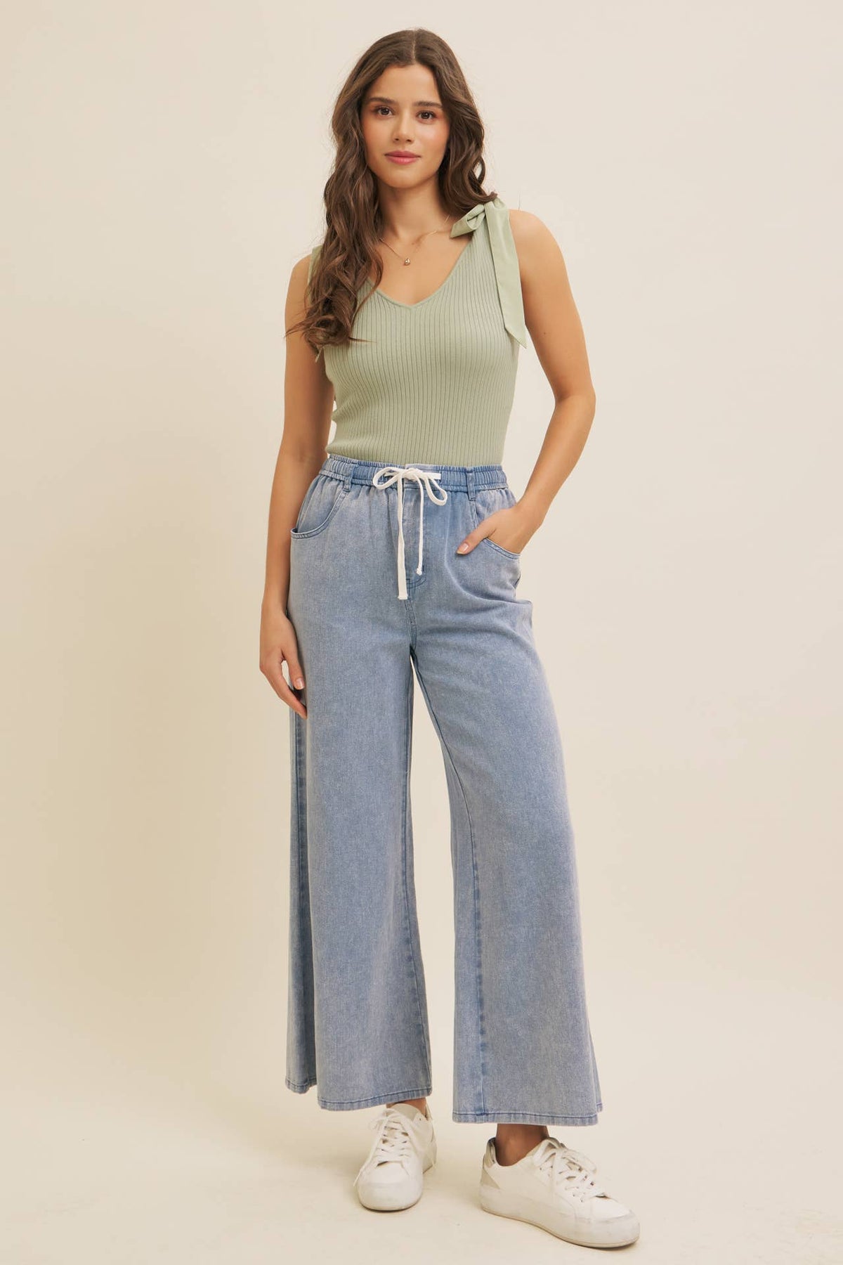 MIXED MEDIA SHOULDER TIE STRETCHY RIB SWEATER TOP