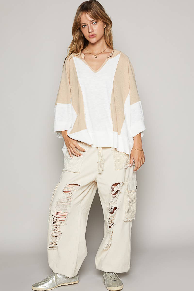 Oversized Top with Frayed Edge