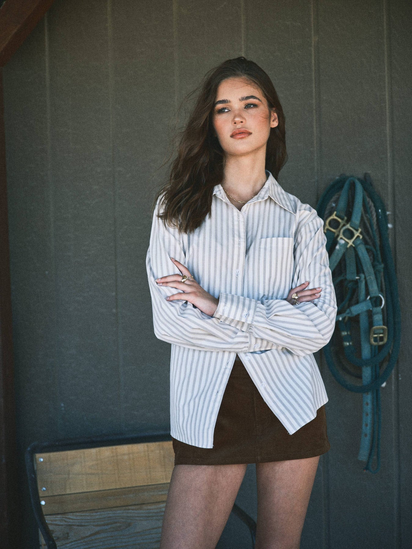 Upgrade your style with the Vera Button Up Shirt! This timeless piece features crisp striped fabric, a classic collared neckline, and a front button closure for that polished look. Long sleeves with cuffs add sophistication, while the self tie at the back lets you cinch the waist for a flattering, feminine silhouette. Perfect for work, weekends, or anytime you want to look effortlessly put together.