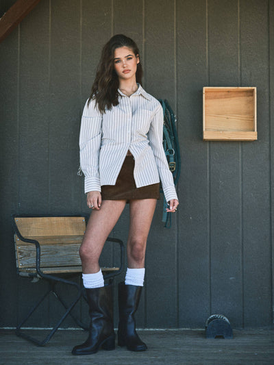 BOAT NECK FITTED SLEEVELESS DENIM VEST