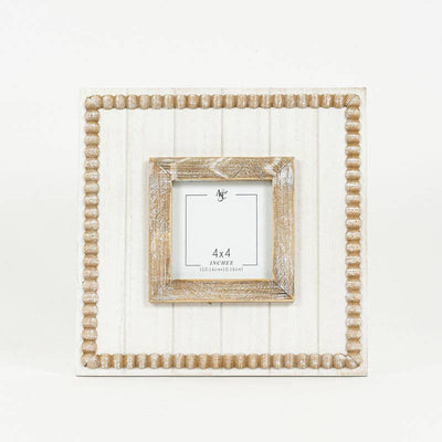 10x10x1.5 wood beaded photo frame, natural/white (for 4x4 pic)