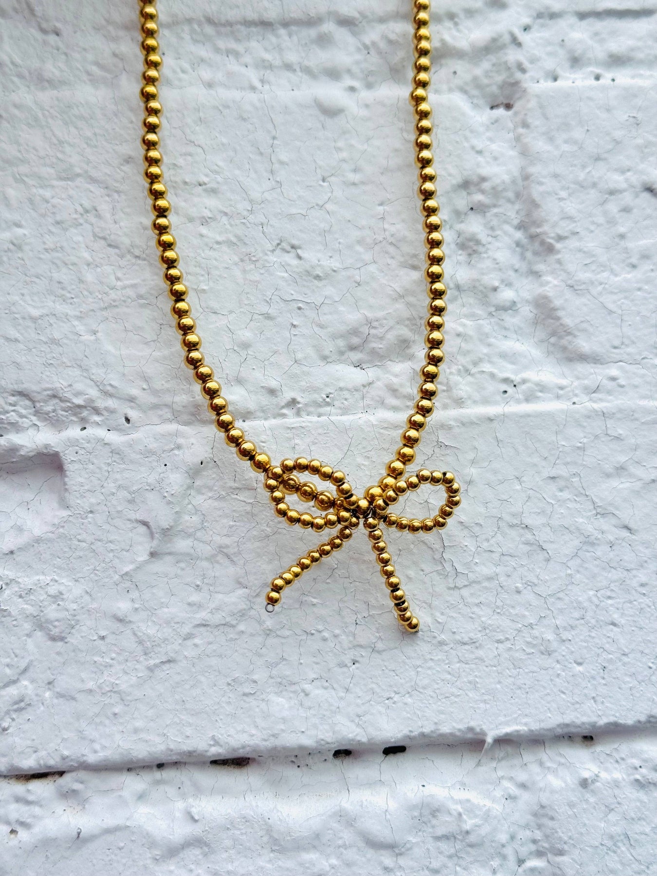 Beaded Bow Necklace ★ 18k Gold Plated Stainless Steel ★ Waterproof & Tarnish Free ★ 16 + 2 inch extender
