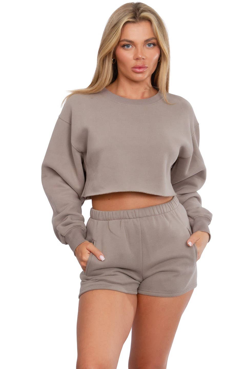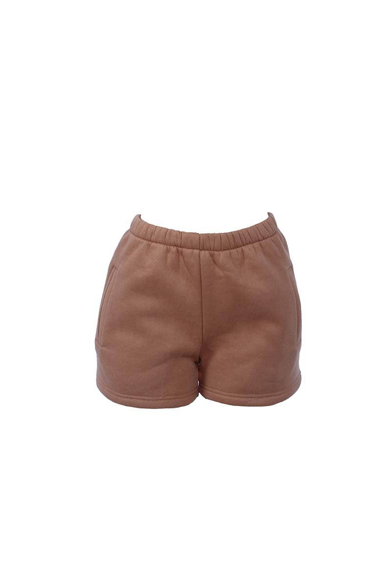 MOMO CASUAL HIGH WAISTED SHORTS. CUTE COZY RELAXED LOUNGEWER FIT. ELASTIC AT THE WASIT BAND FEATURING A STRETCHY HIGH RISE FIT WITH SIDE POCKETS. MIDWAIGHT FLEECE MATERIAL.