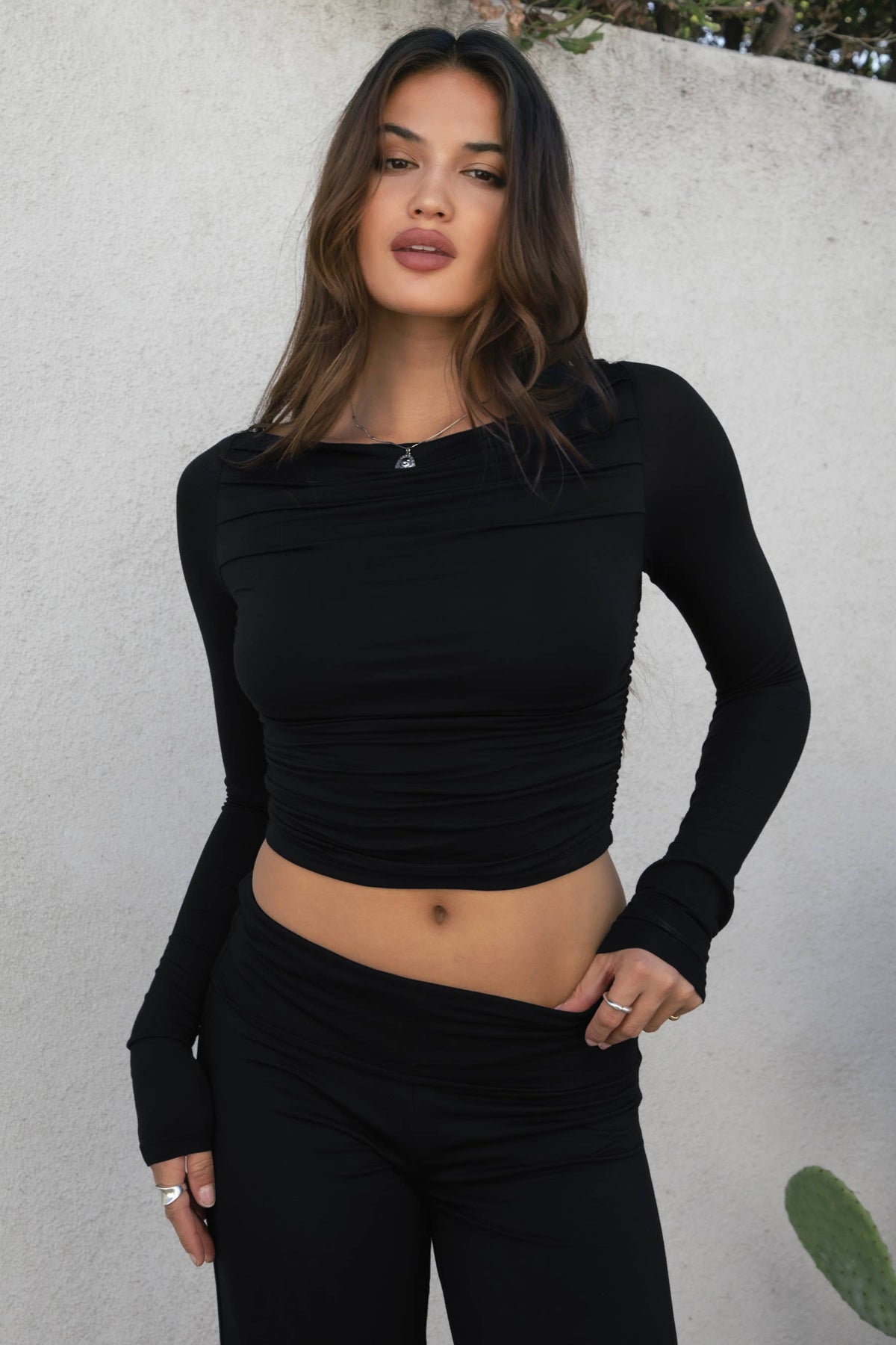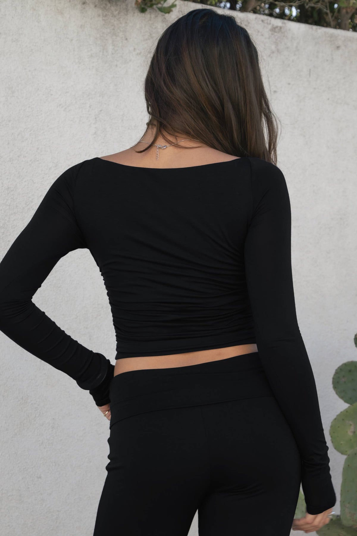 JOLINA Boat Neckline Basic Casual Lounge Long Sleeve Top